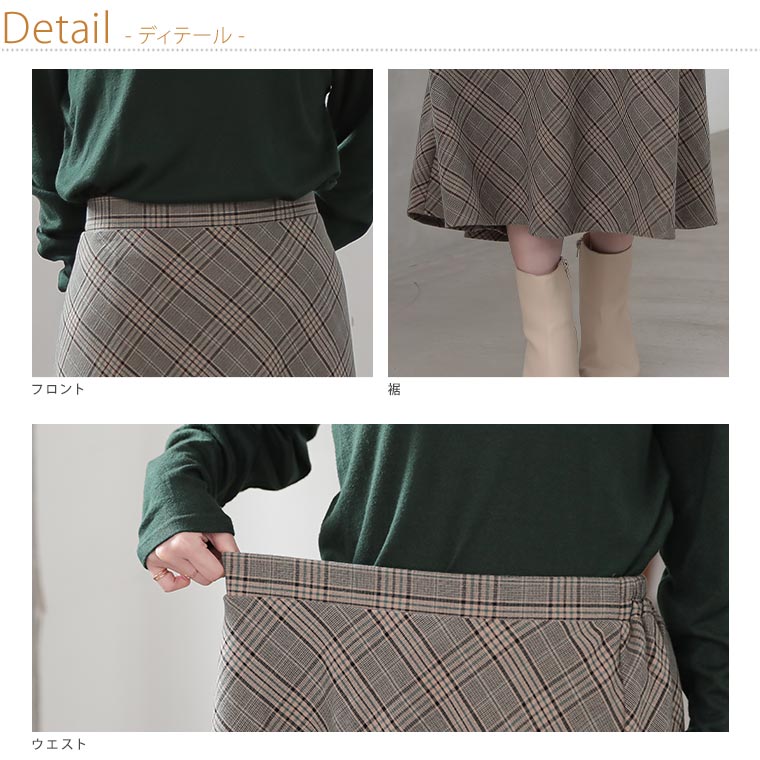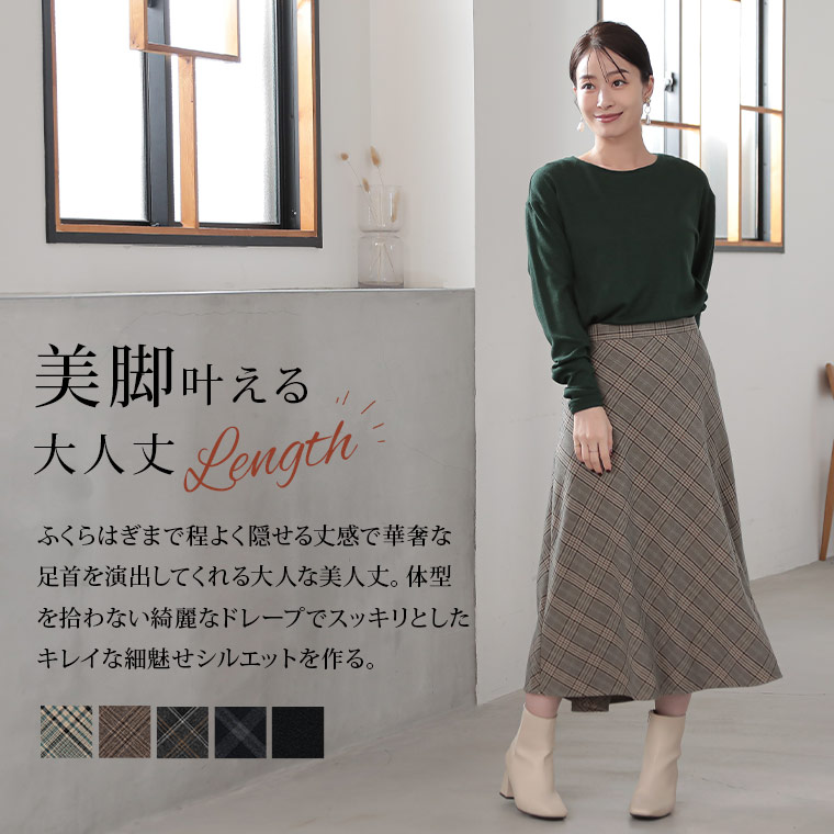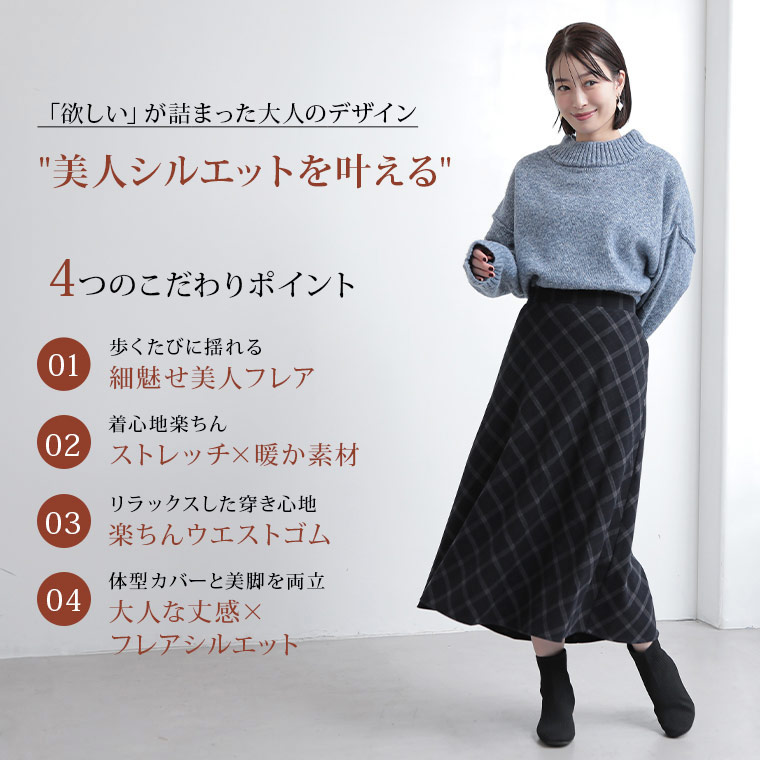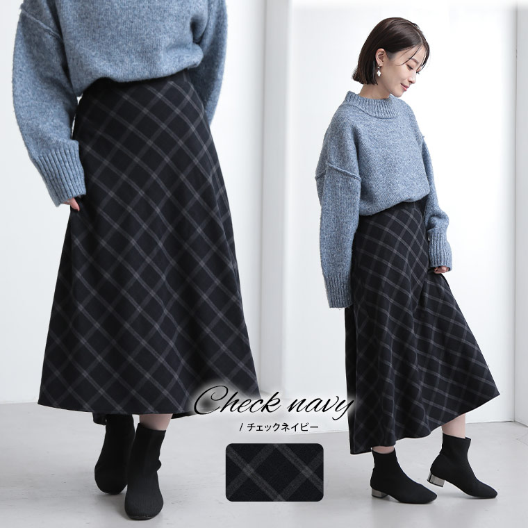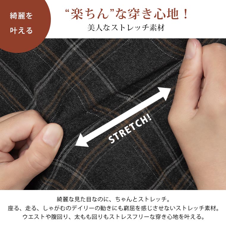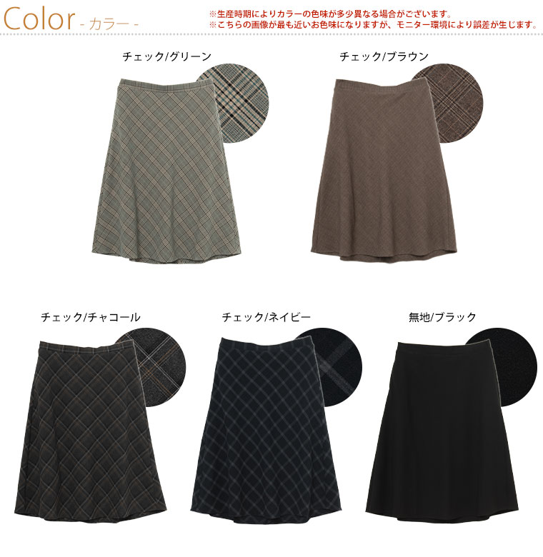 チェックと無地から選べる!ストレッチ生地で楽々フレアスカート