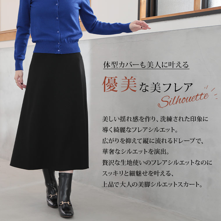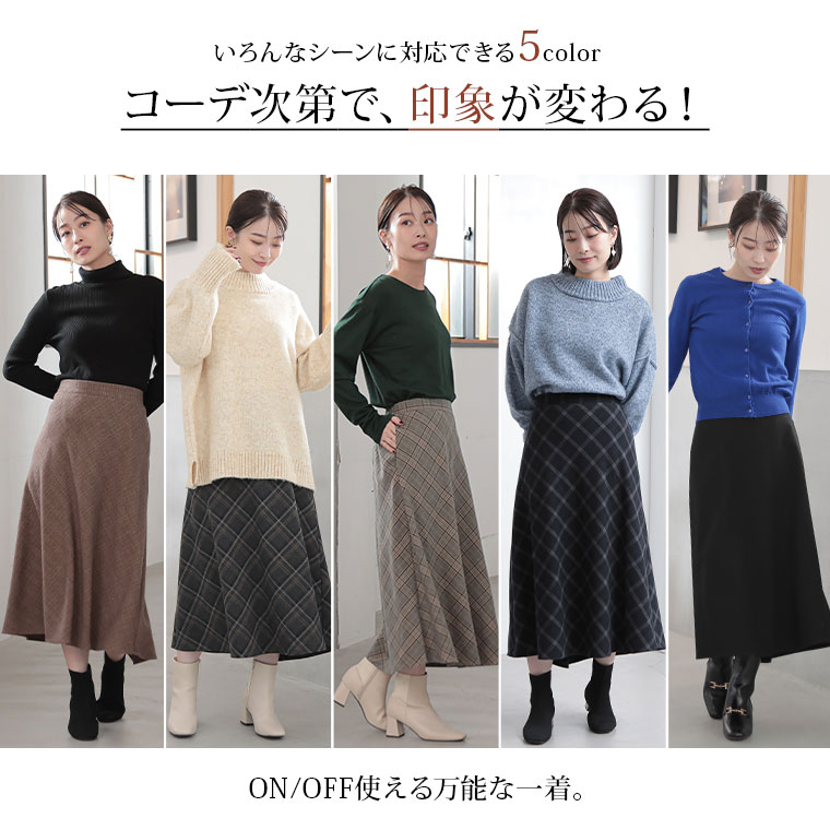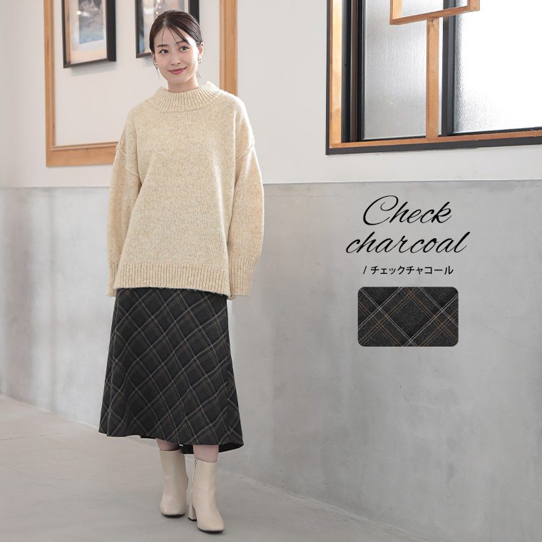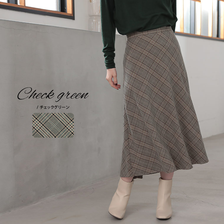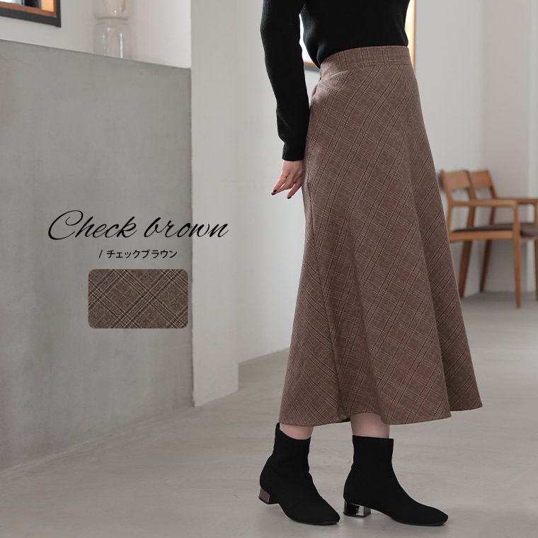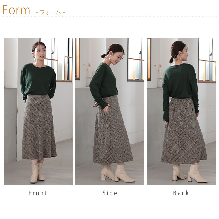 チェックと無地から選べる!ストレッチ生地で楽々フレアスカート