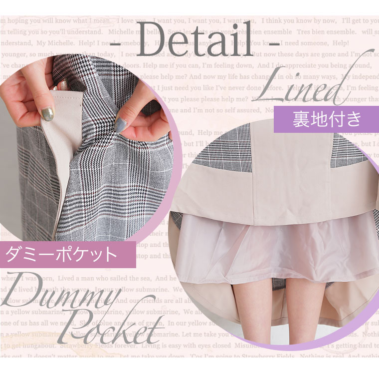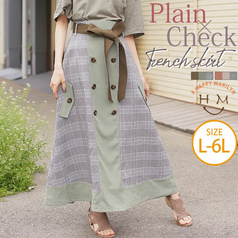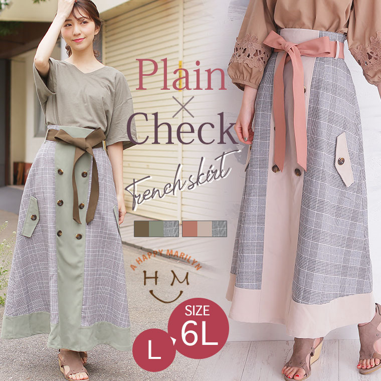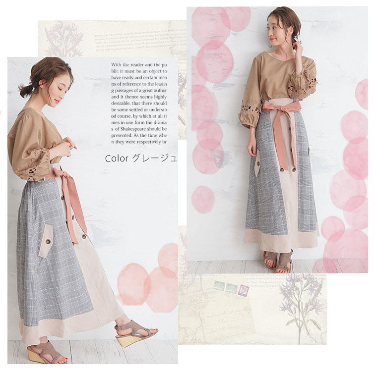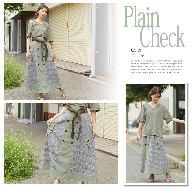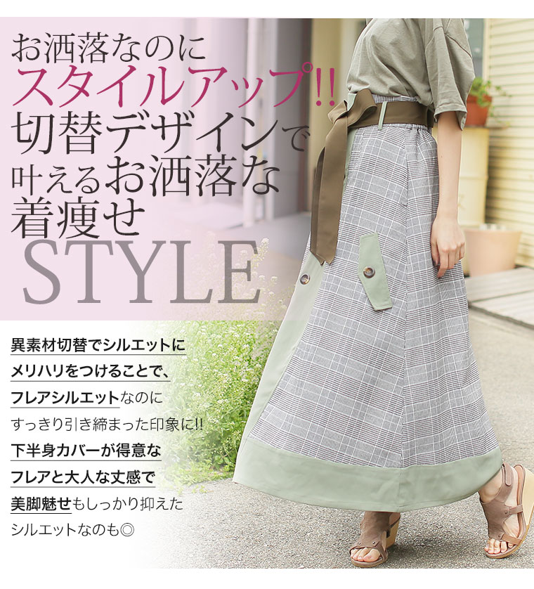 無地×グレンチェック切替配色リボンウエストベルトトレンチスカート
