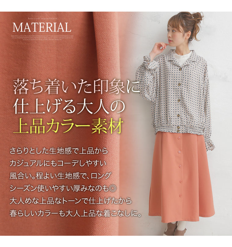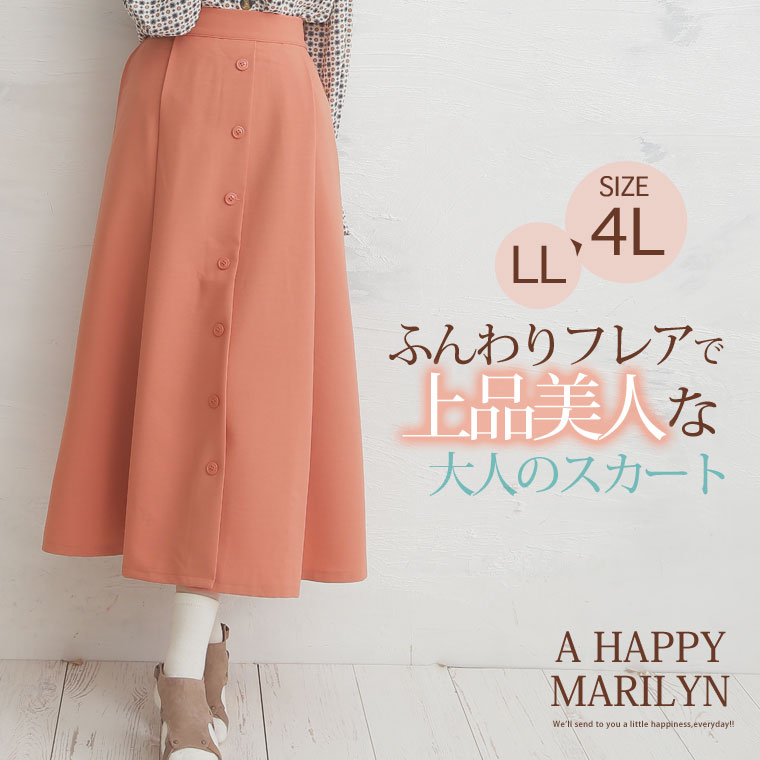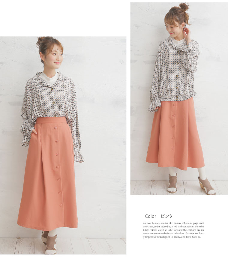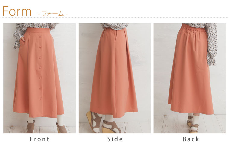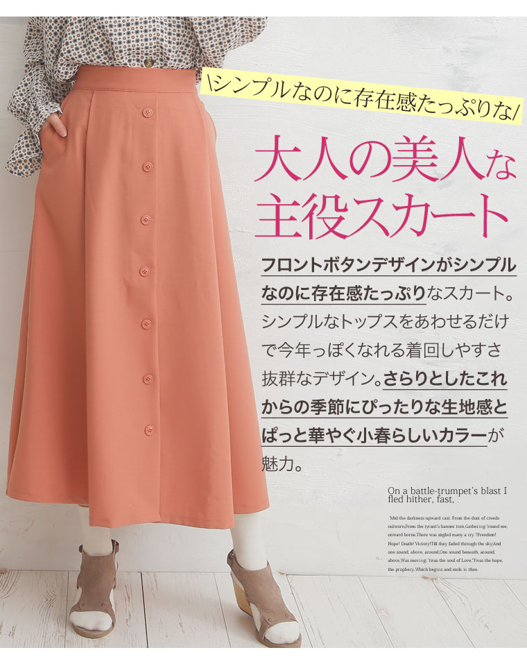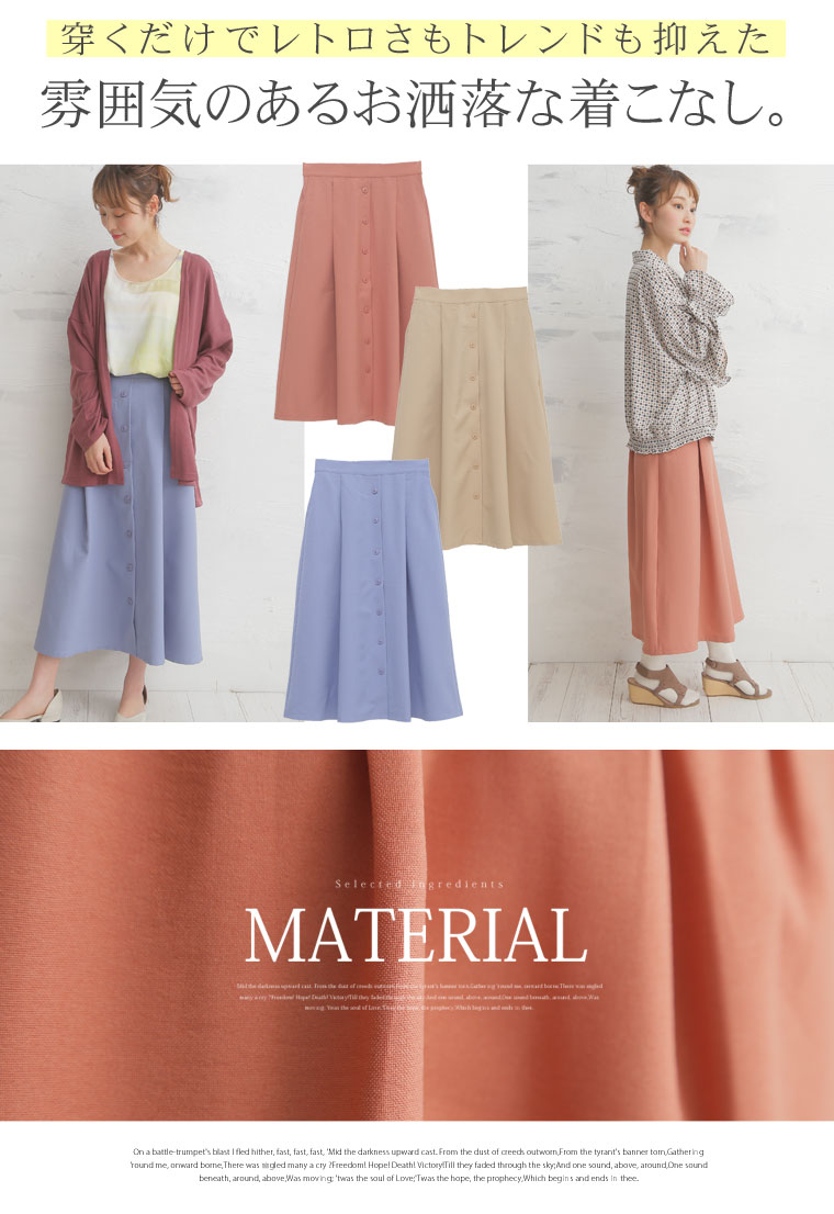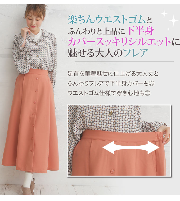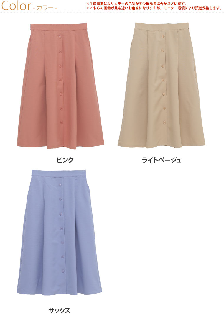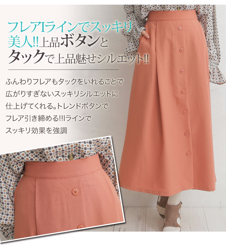 フロントボタンデザインでスッキリ着こなす!!ふんわりフレア上品スカート