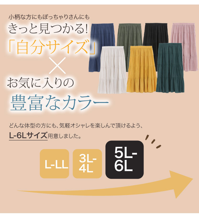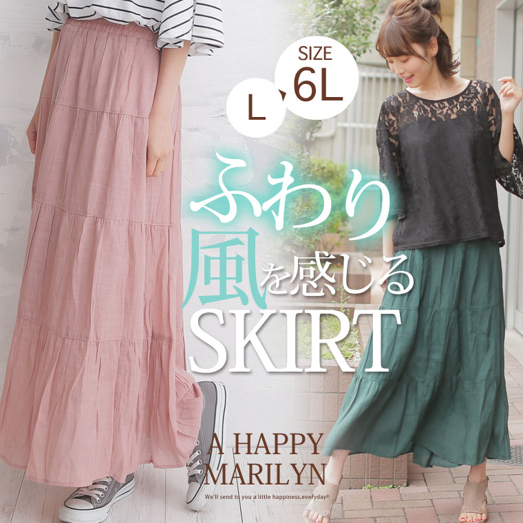 ボトムス ロングスカート マキシスカート ロング丈スカート マキシ丈スカート LL 3L 4L 5L 6L 春 春物 春服 ぽっちゃり かわいい おしゃれ カジュアル RTスラブ素材 マキシ丈 ティアードスカート