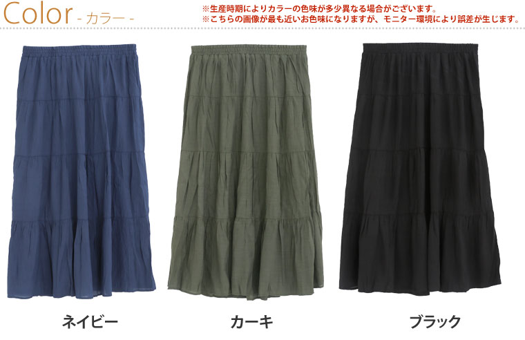 3. 大きいサイズ RTスラブ素材 マキシ丈 ティアードスカート