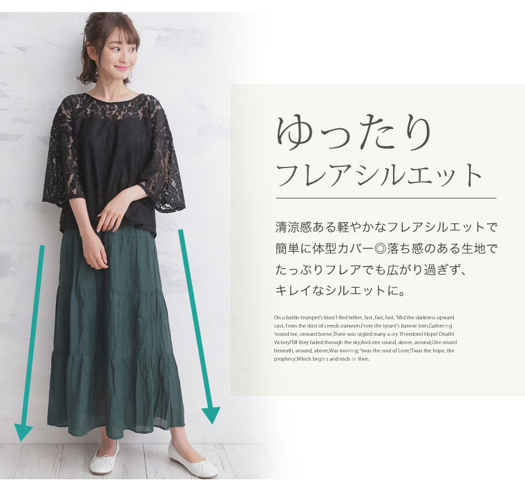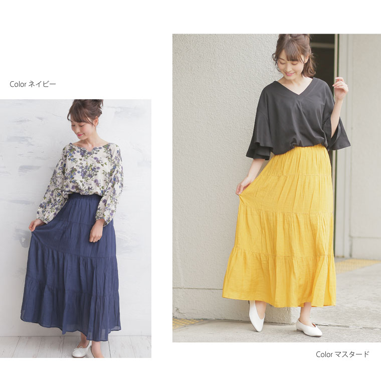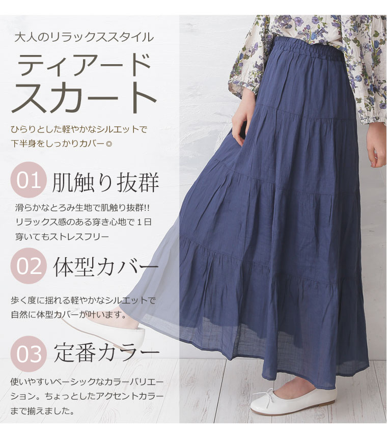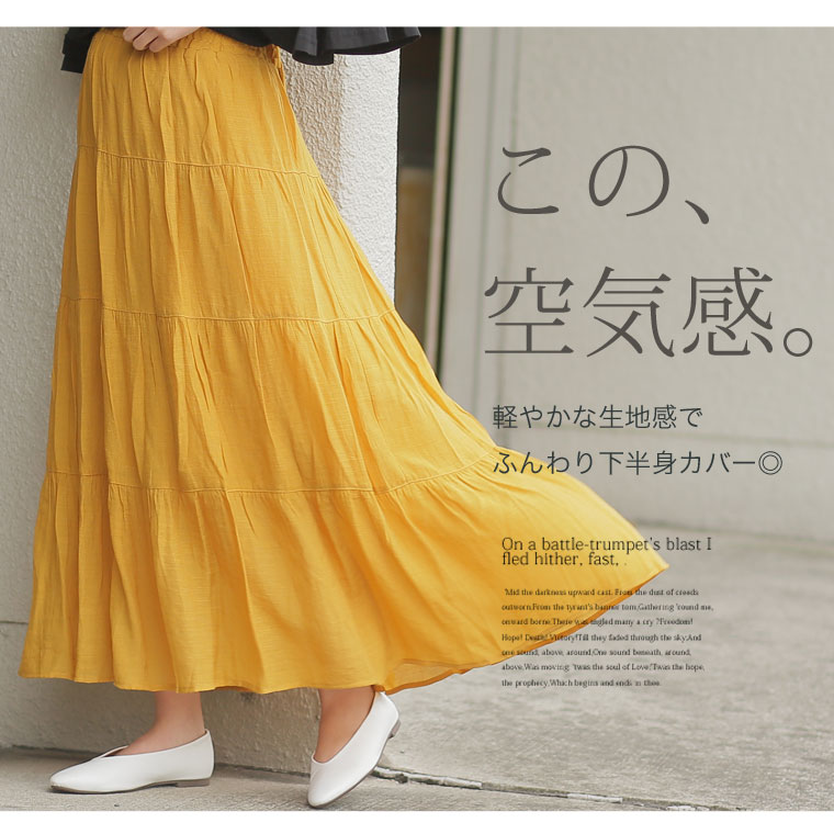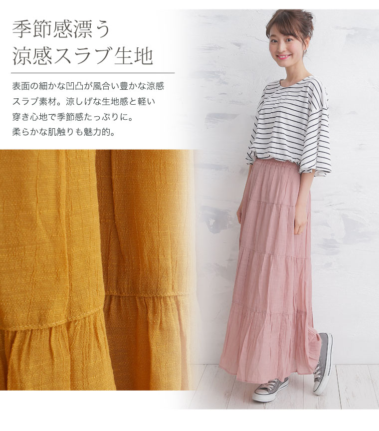 ふんわりスラブ生地で軽やかな着こなしに。ティアードスカート
