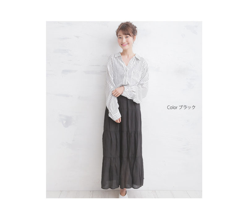 4. 大きいサイズ RTスラブ素材 マキシ丈 ティアードスカート