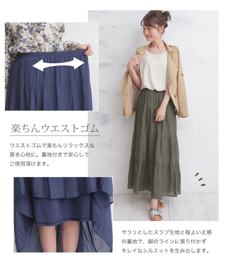 大きいサイズ RTスラブ素材 マキシ丈 ティアードスカート