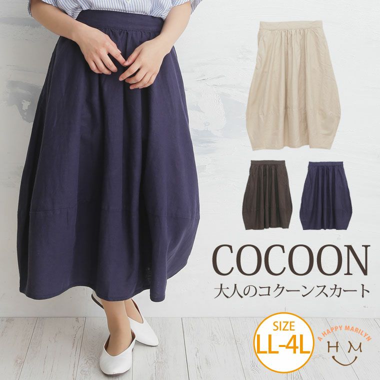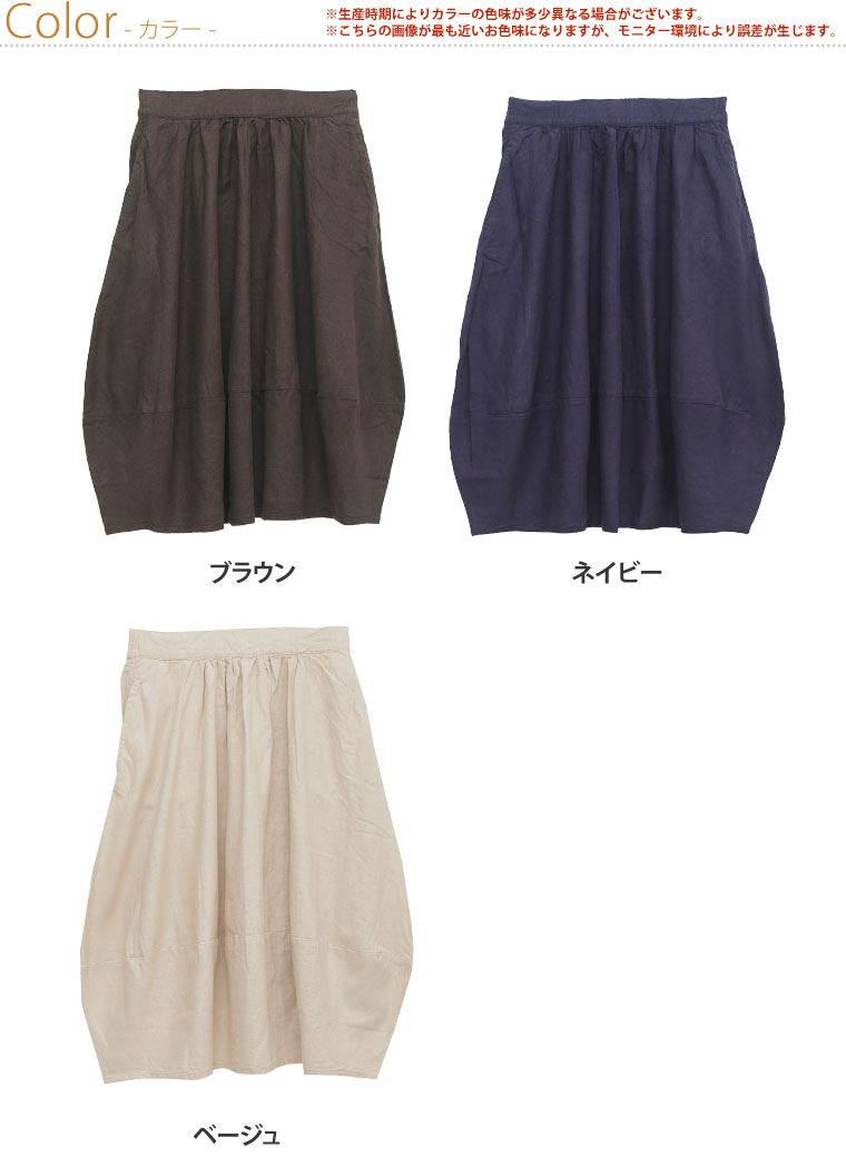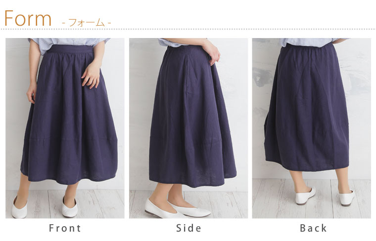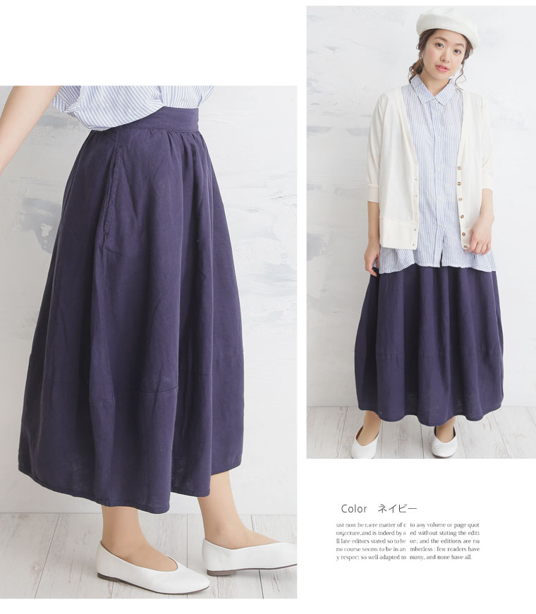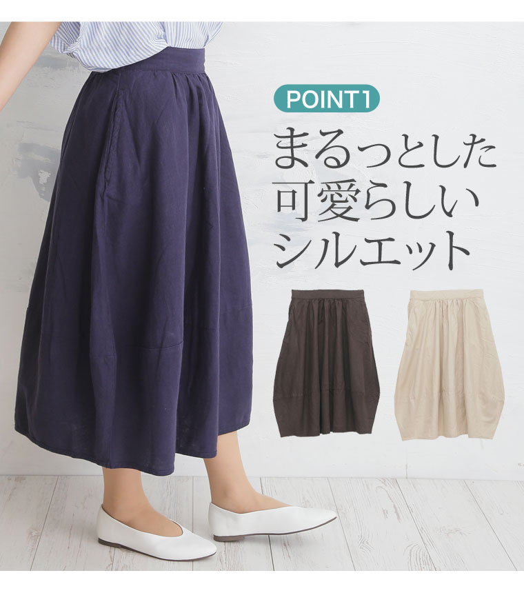 ふんわりとしたカジュアルデザインのコクーンリネンスカート