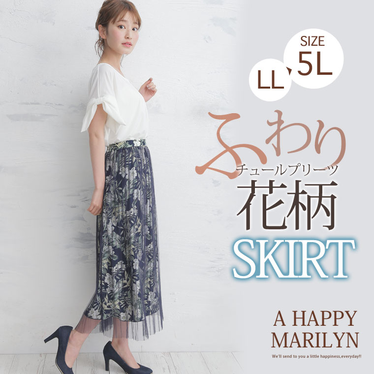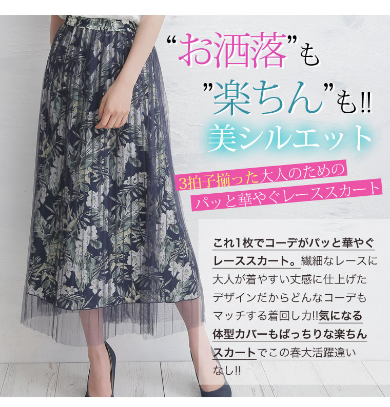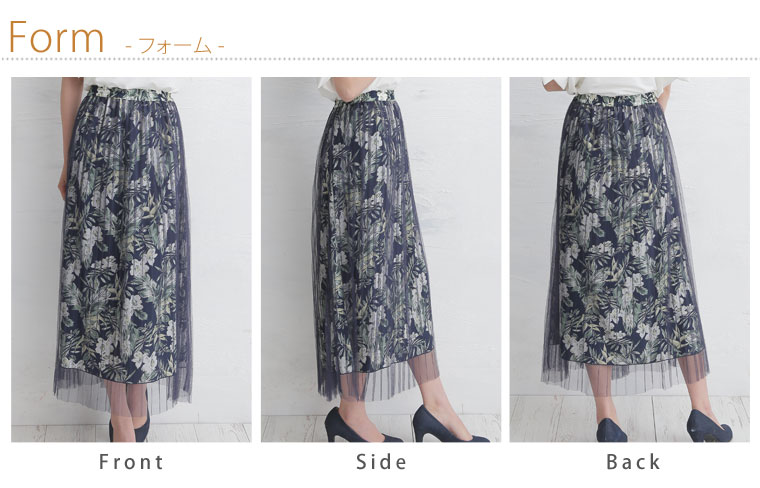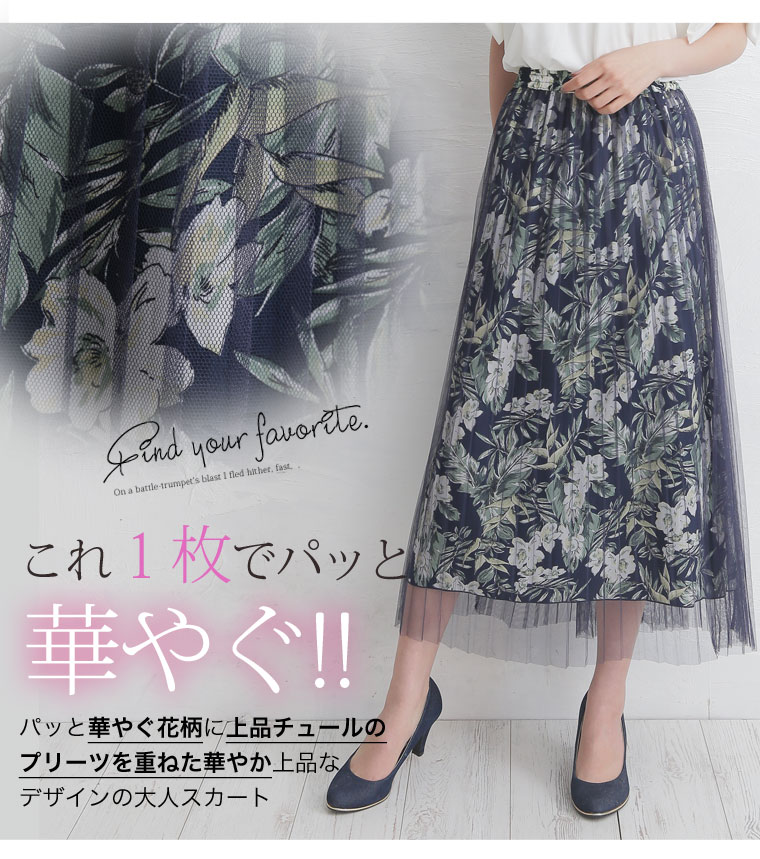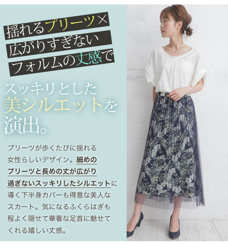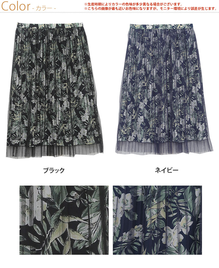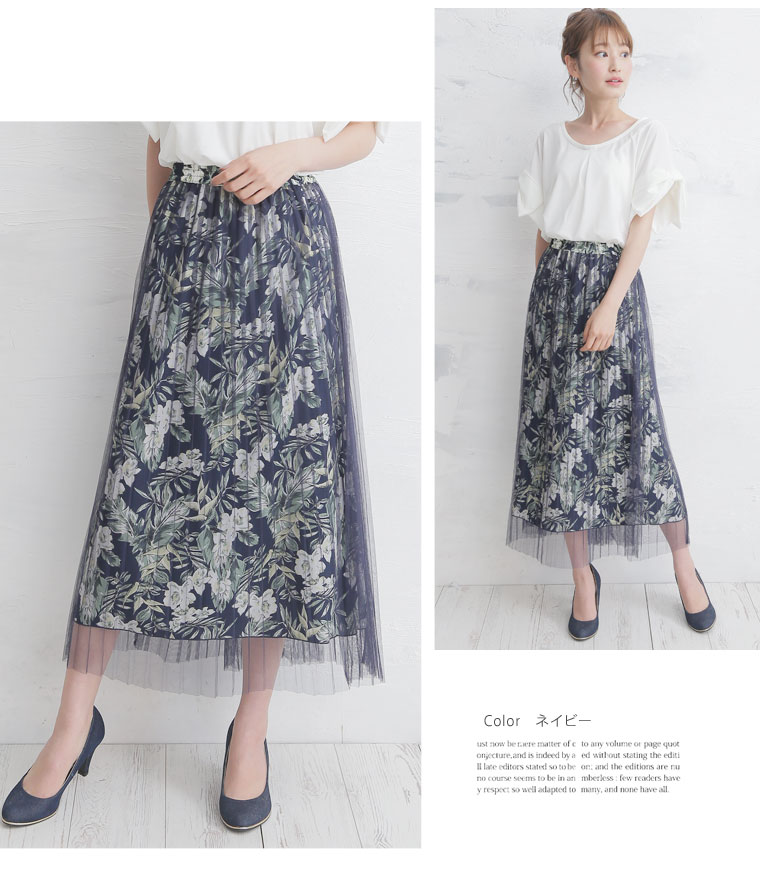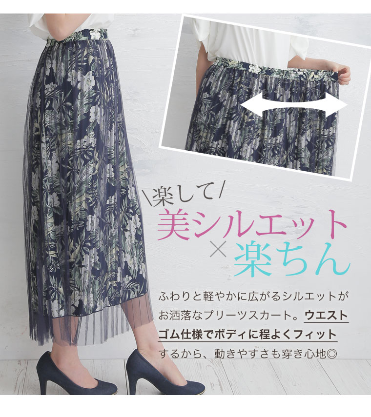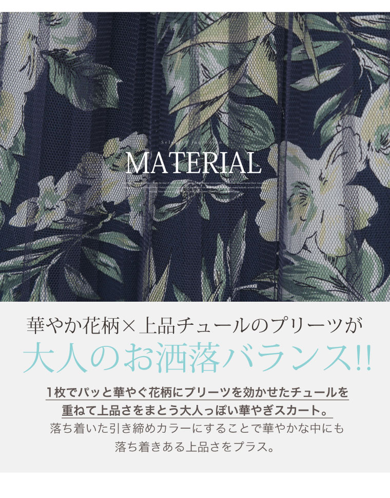 チュールプリーツ重ねでふんわりカバー◎花柄デザインスカート