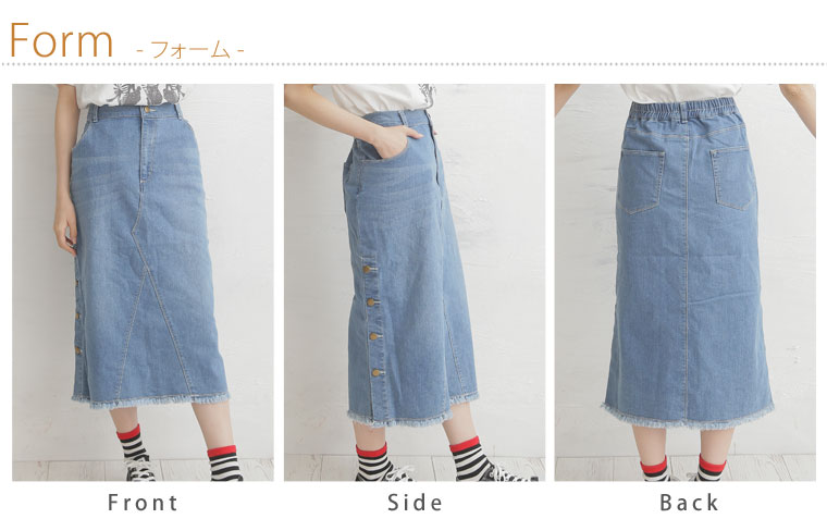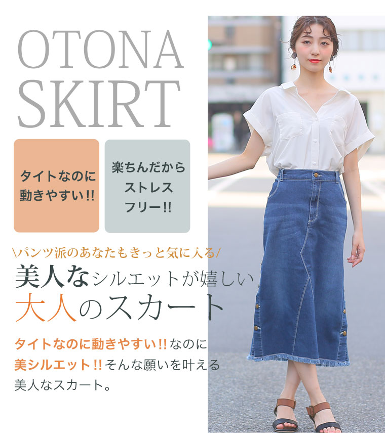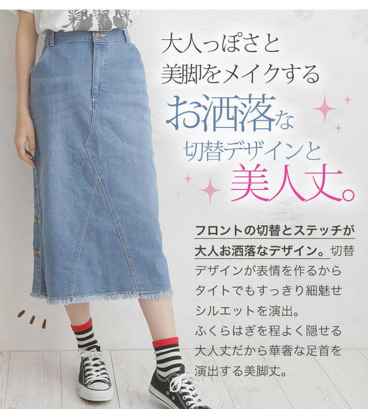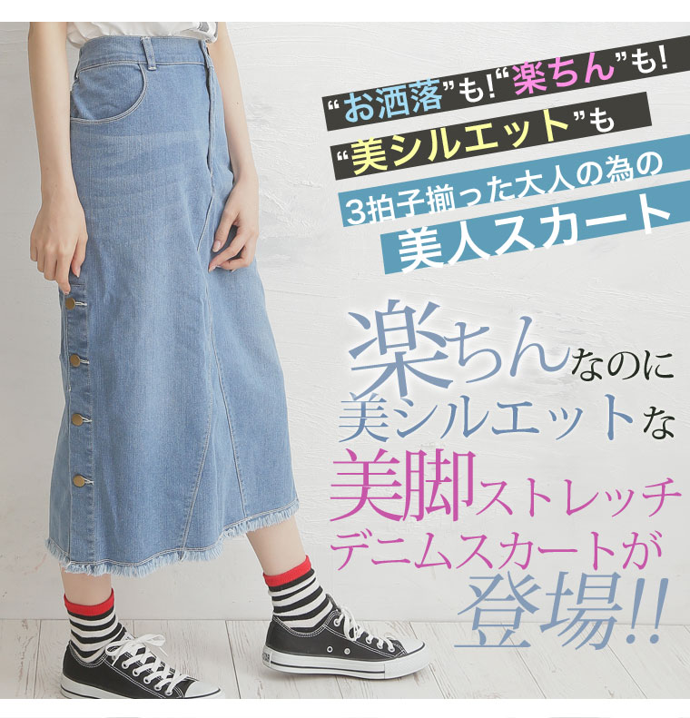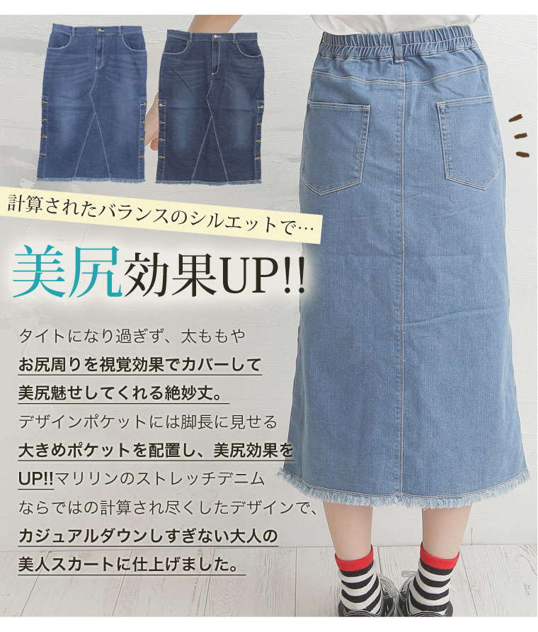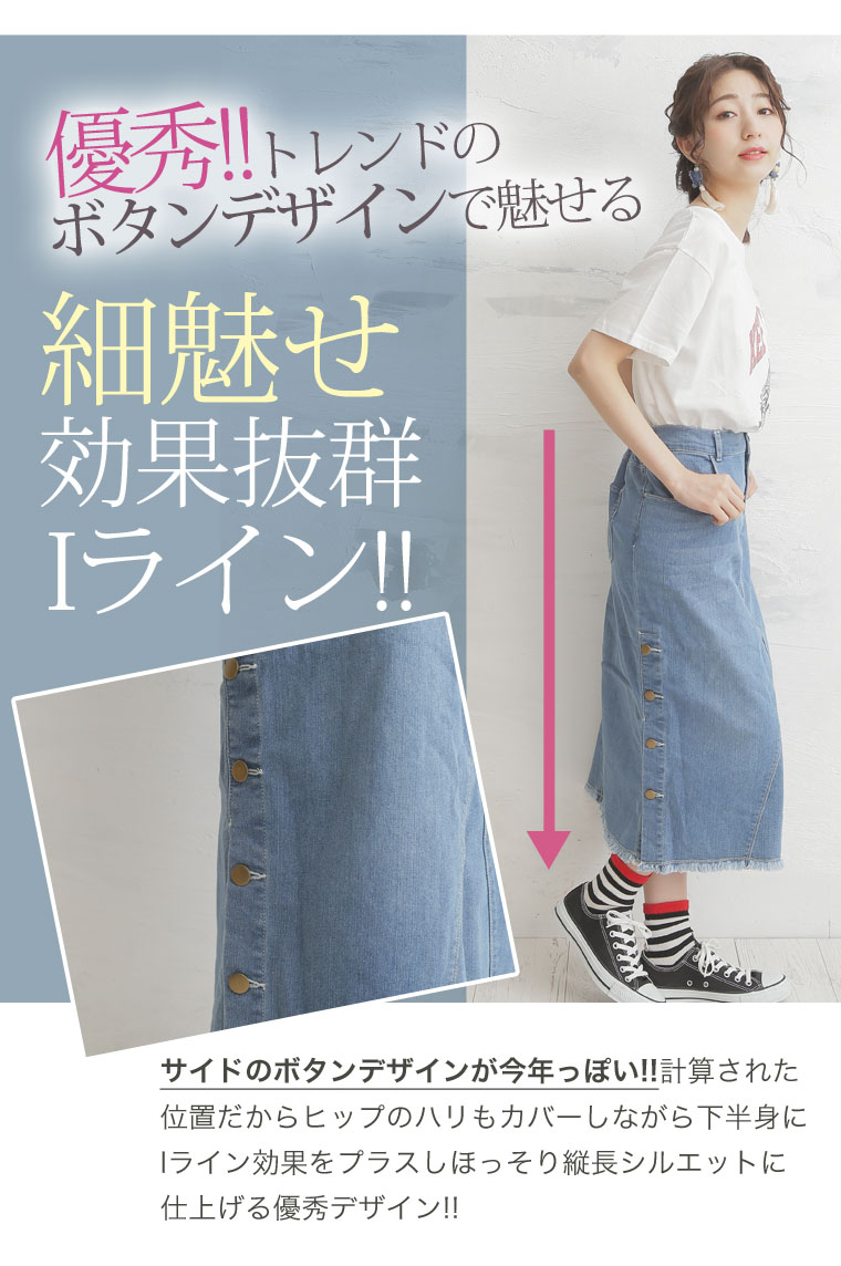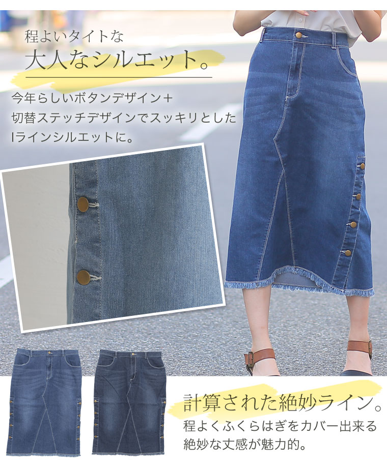 サイドスリットボタンがアクセント!!ストレッチデニムスカート