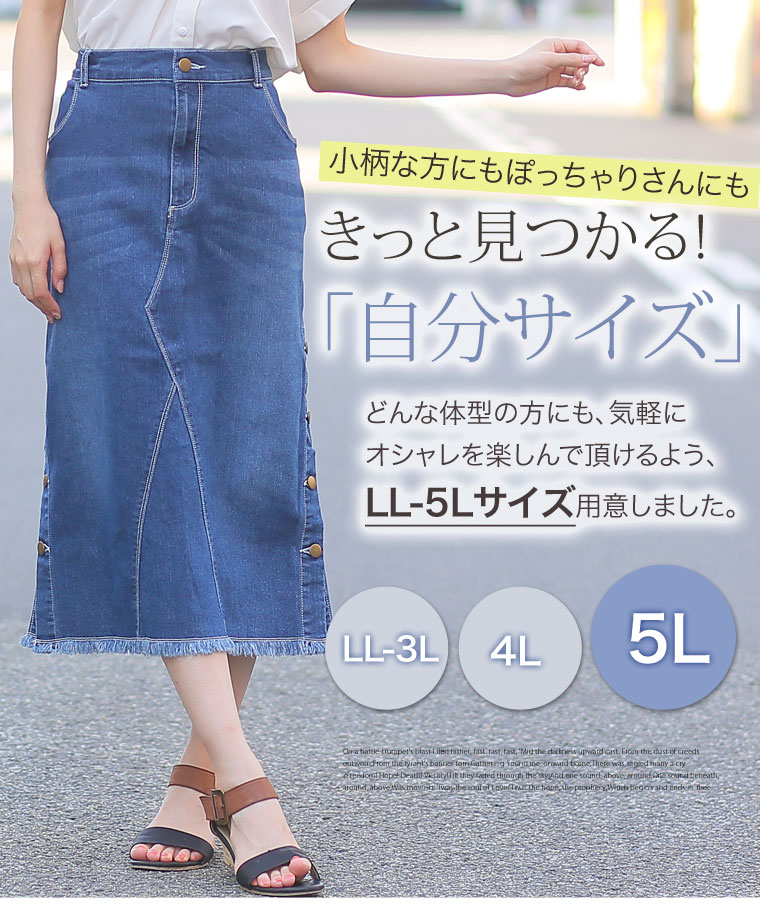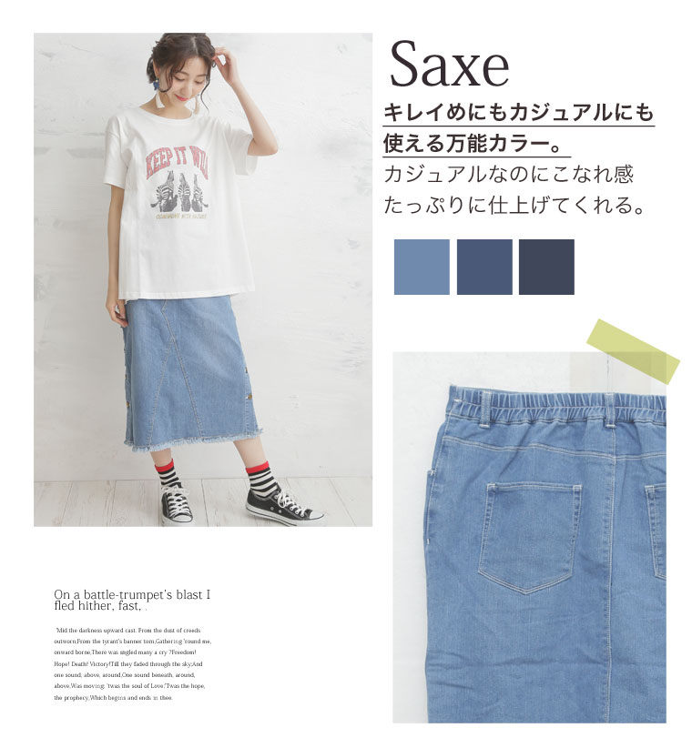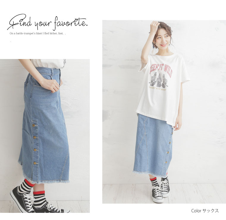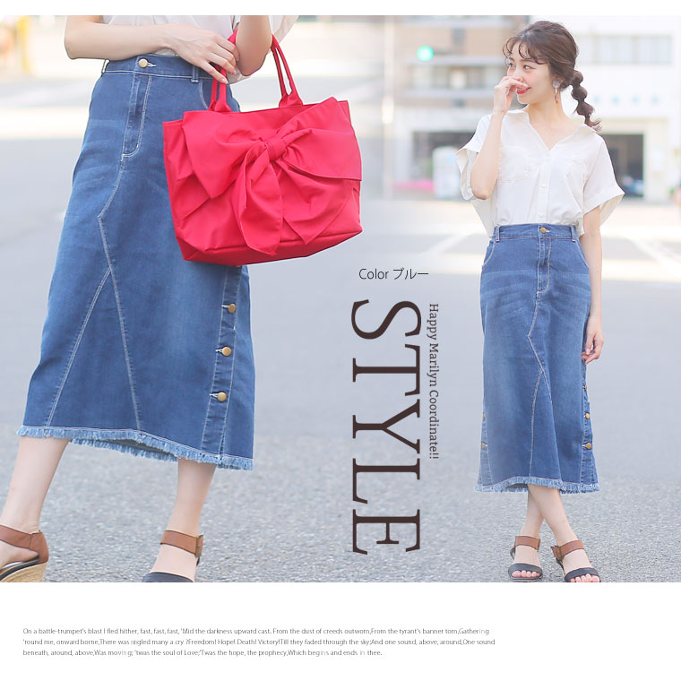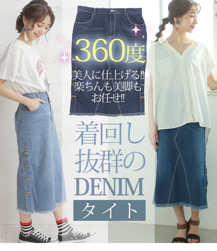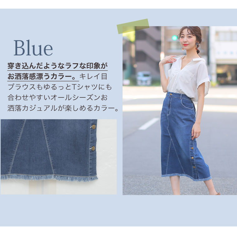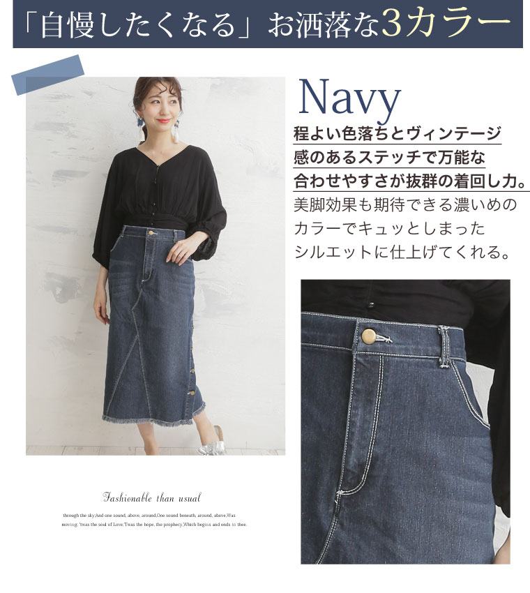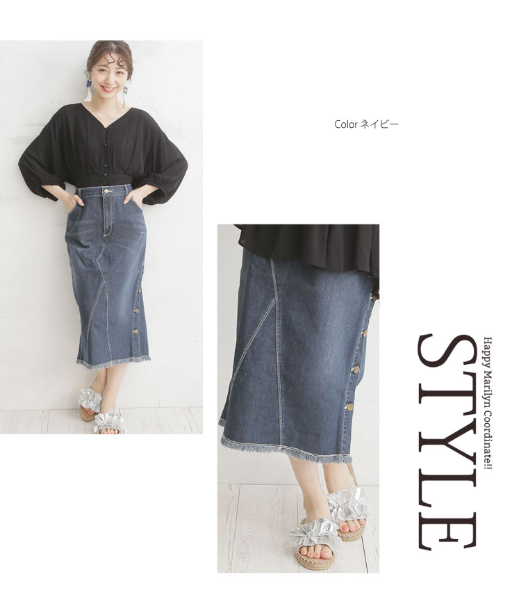 サイドスリットボタンがアクセント!!ストレッチデニムスカート