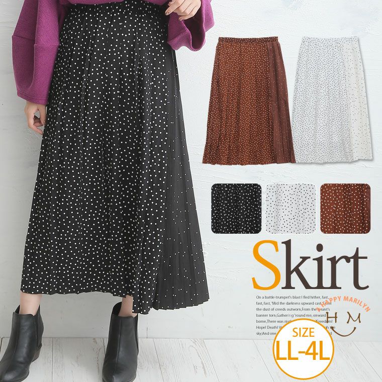 スカート プリーツスカート ボトムス LL 3L 4L 冬 冬物 冬服 ぽっちゃり かわいい おしゃれ デシン ドット柄 プリーツ切替 ロングスカート | 大きいサイズの通販ならハッピーマリリン