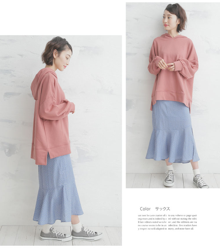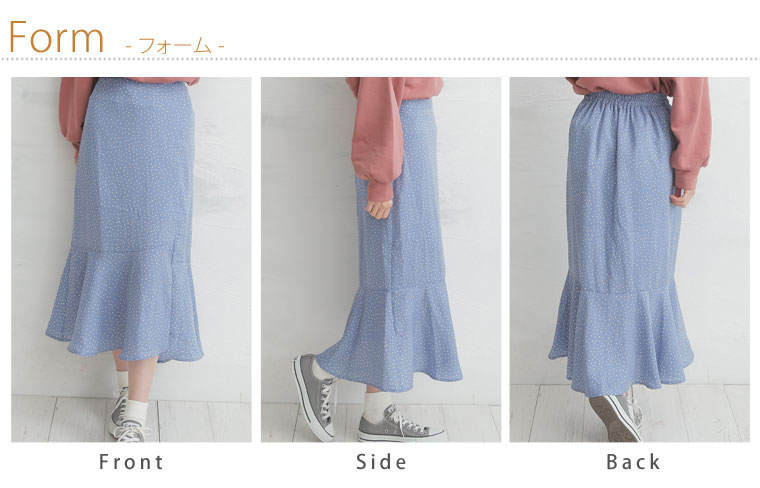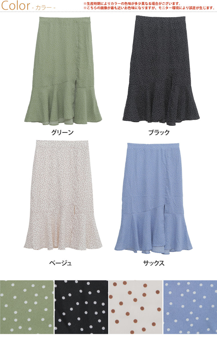 裾スリットで軽やかに。アシンメトリーで華やかなジョーゼットランダムドットスカート