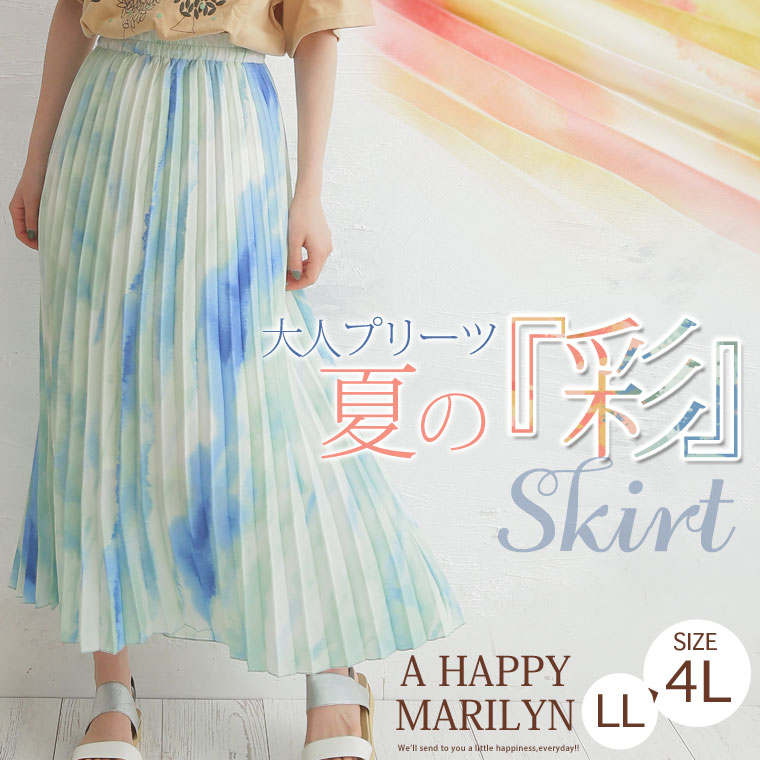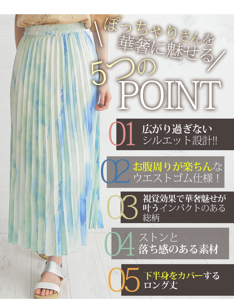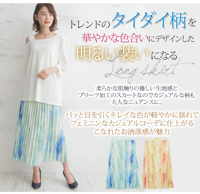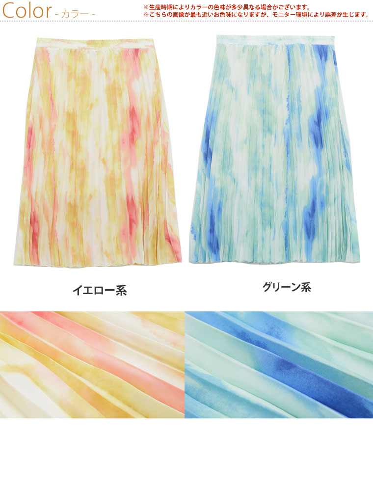 ジョーゼットタイダイ柄プリント83丈アコーディオンプリーツスカート