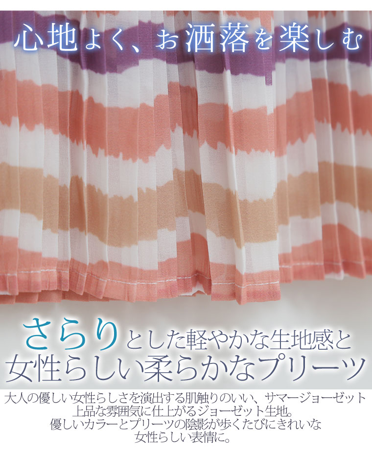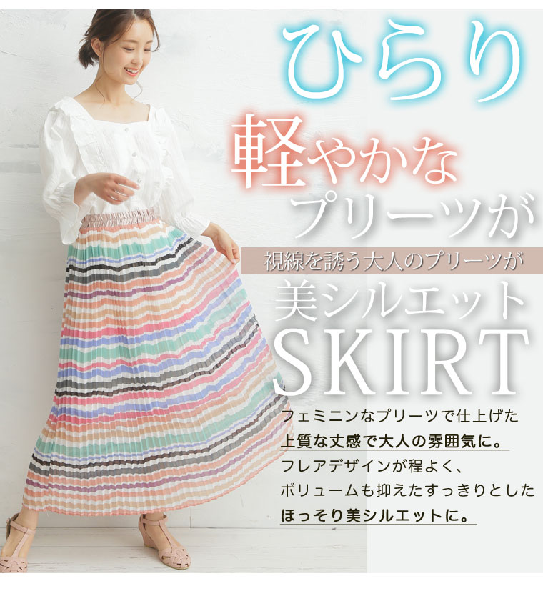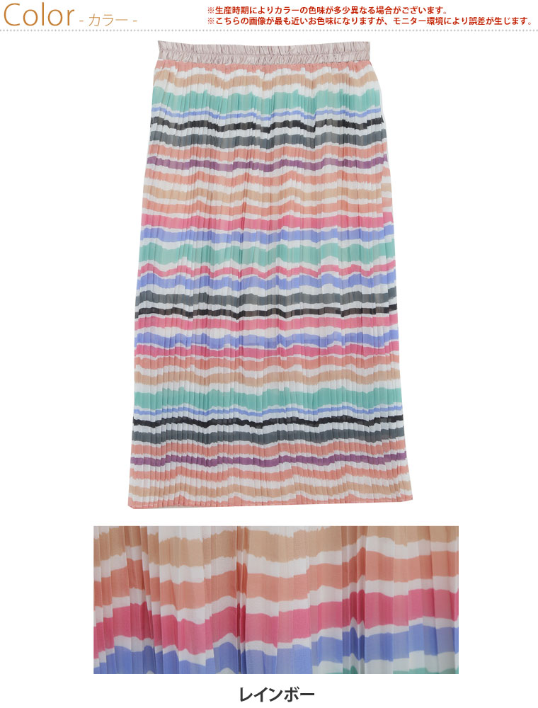 目を惹くカラーと繊細プリーツのジョーゼットレインボープリントプリーツスカート
