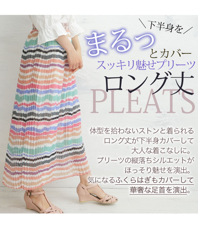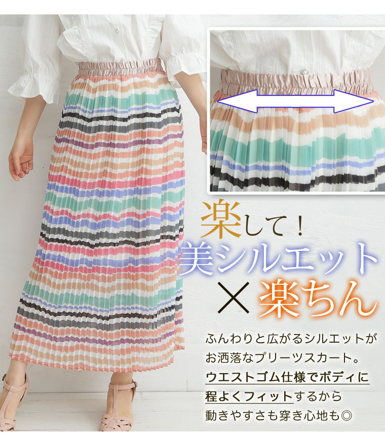ウエストゴムでゆったり楽ちん♪プリーツがふんわり広がって可憐に華奢魅せ