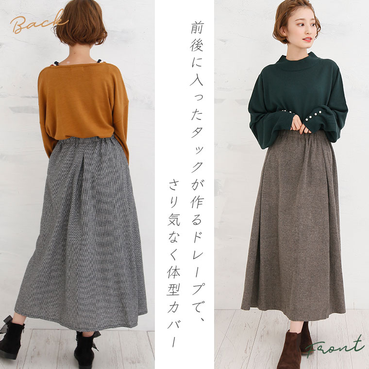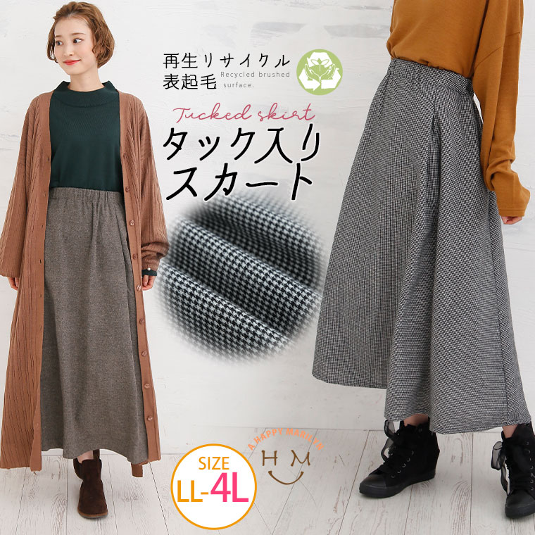 地球に優しい!再生リサイクル裏起毛のタック入りスカート