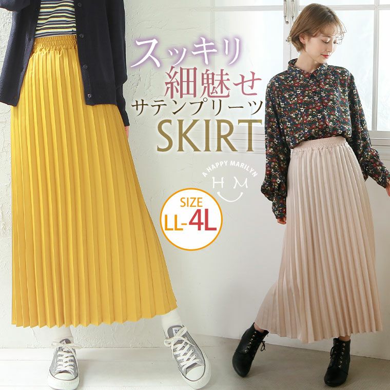 スッキリ細魅せ サテンプリーツスカート