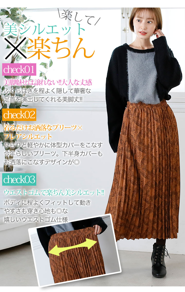 絶妙な丈感が美シルエットプリーツスカート