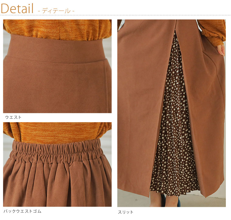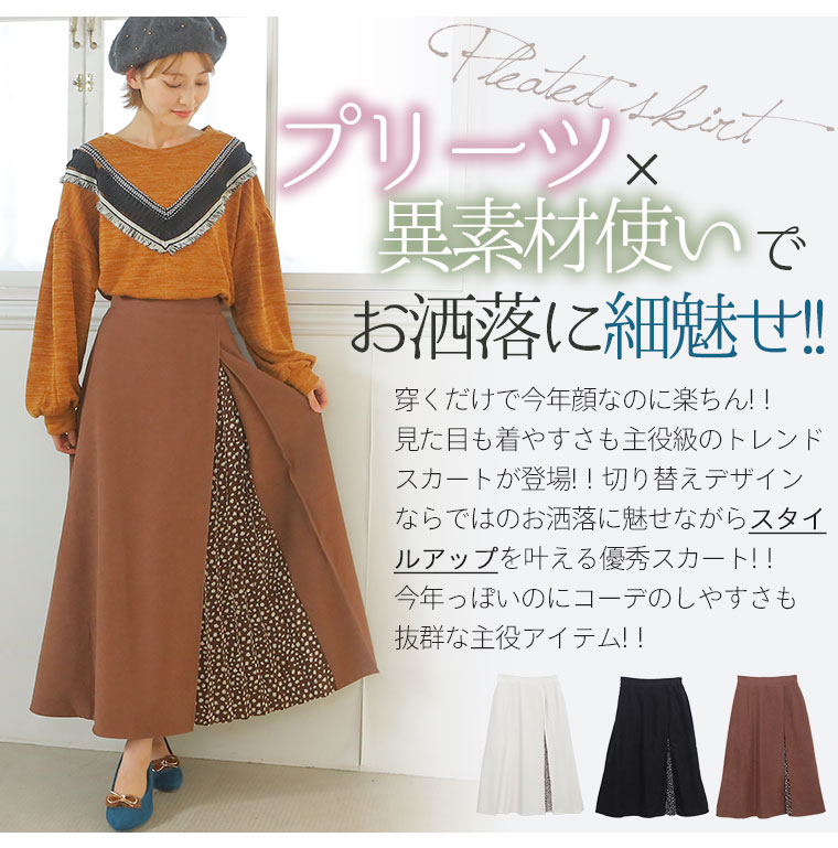 プリーツがスリットからひらり!異素材使いでお洒落に着こなしスカート