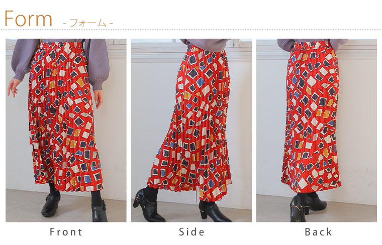 3. 大きいサイズ デシン 幾何学柄プリント 85丈 アコーディオンプリーツ スカート