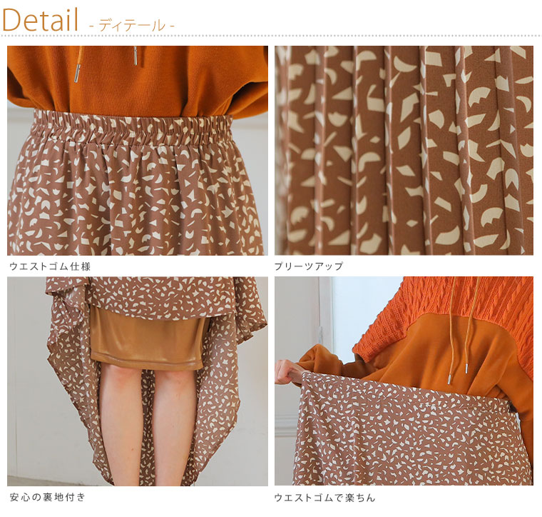 片面プリーツデザインでフロント・バック・サイドプリーツの3通りの着こなしができる