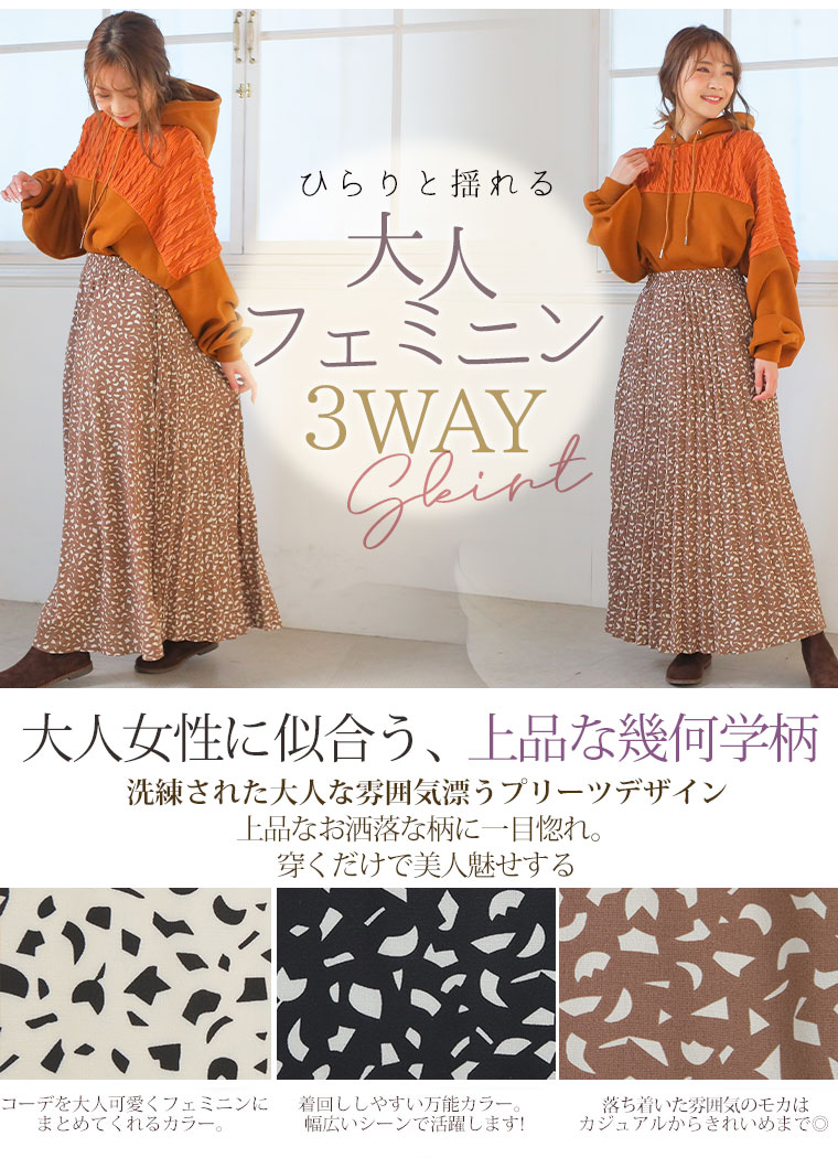 シルエットラインが上品綺麗な3WAYプリーツスカート