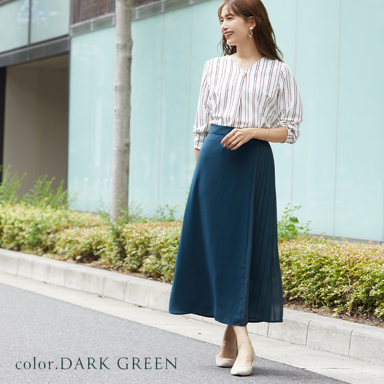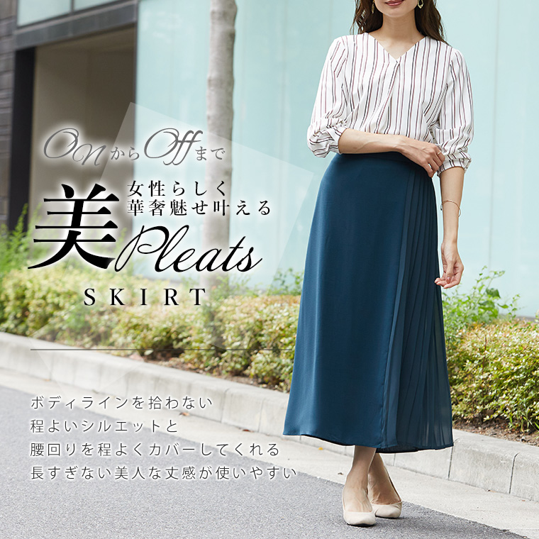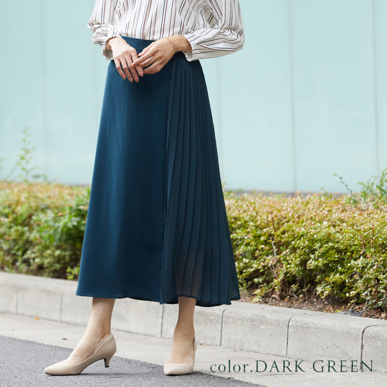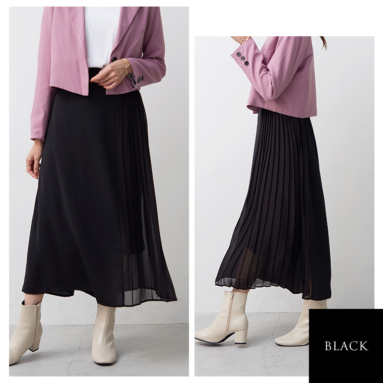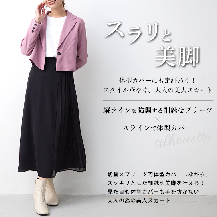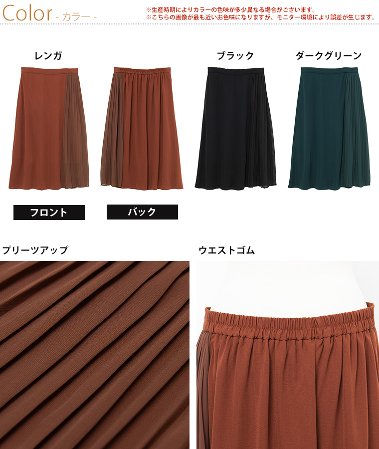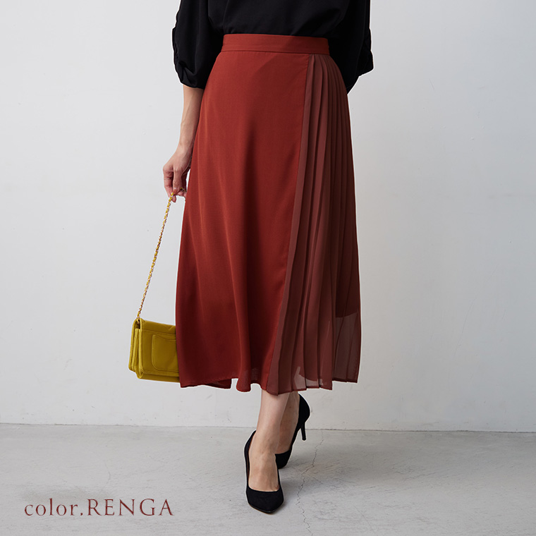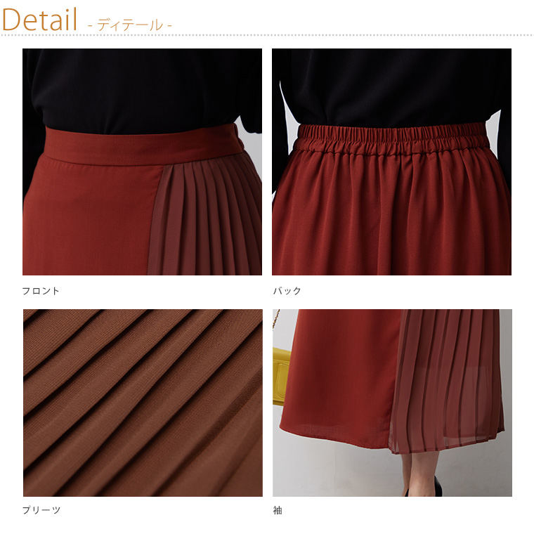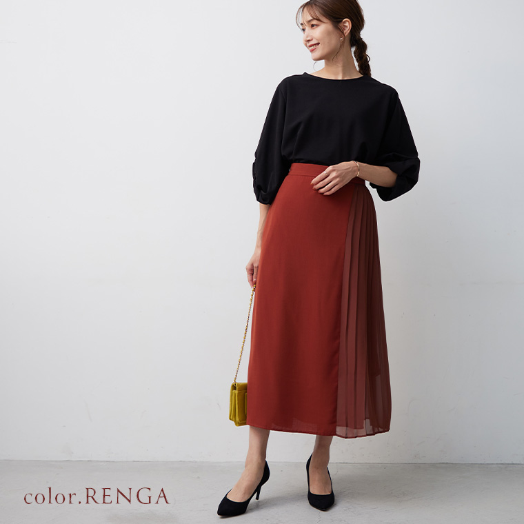 4. 大きいサイズ Rin 異素材 サイドプリーツ スカート