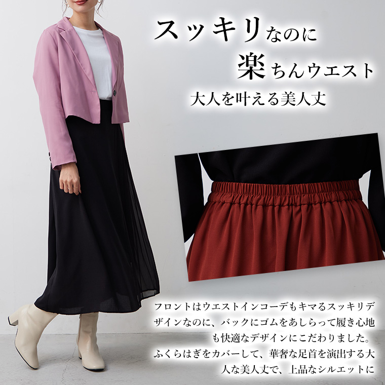 ボトムス ロングスカート LL 3L 4L 秋 秋物 秋冬 ぽっちゃり ゆったり かわいい おしゃれ ナチュラル プラスサイズ リン きれいめ 上品 華やか 高見え エレガント Rin 異素材 サイドプリーツ スカート