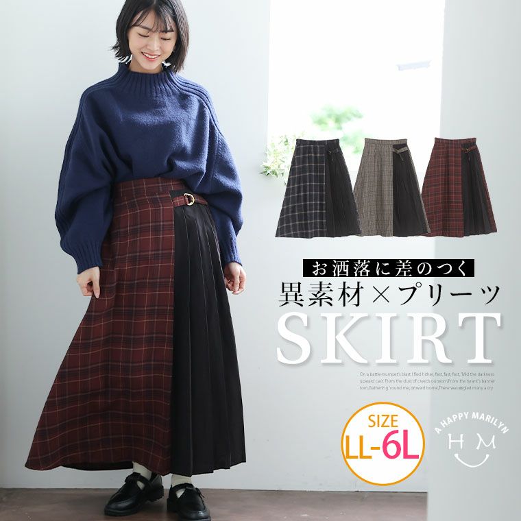 お洒落に差がつく チェック柄切替スカート