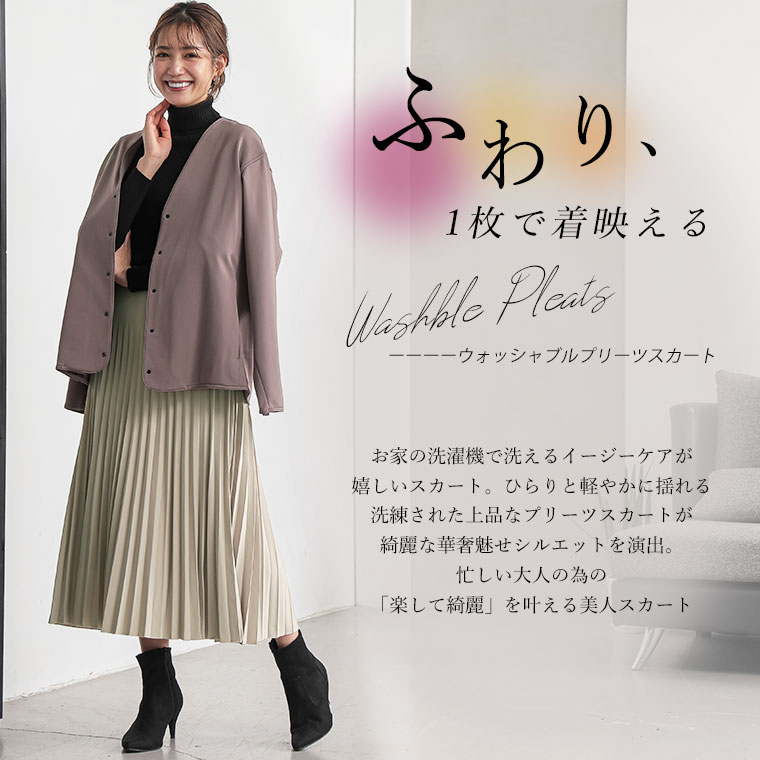 ざぶざぶ洗える! ウォッシャブル!スムースプリーツスカート