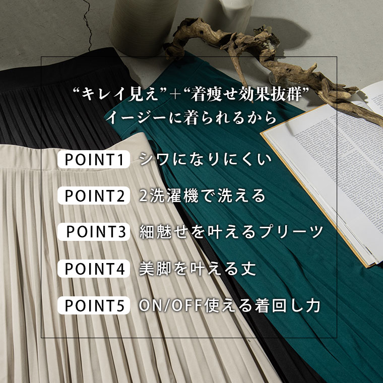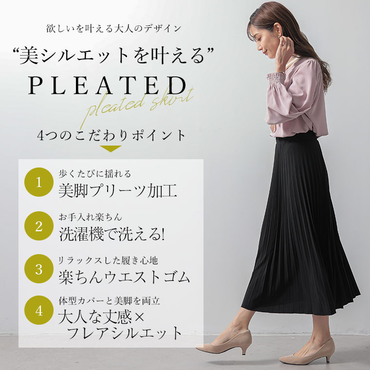 プリーツで楽ちん細魅せ!着回し力も抜群