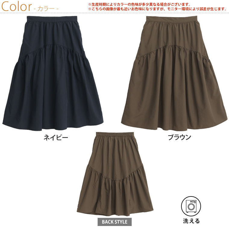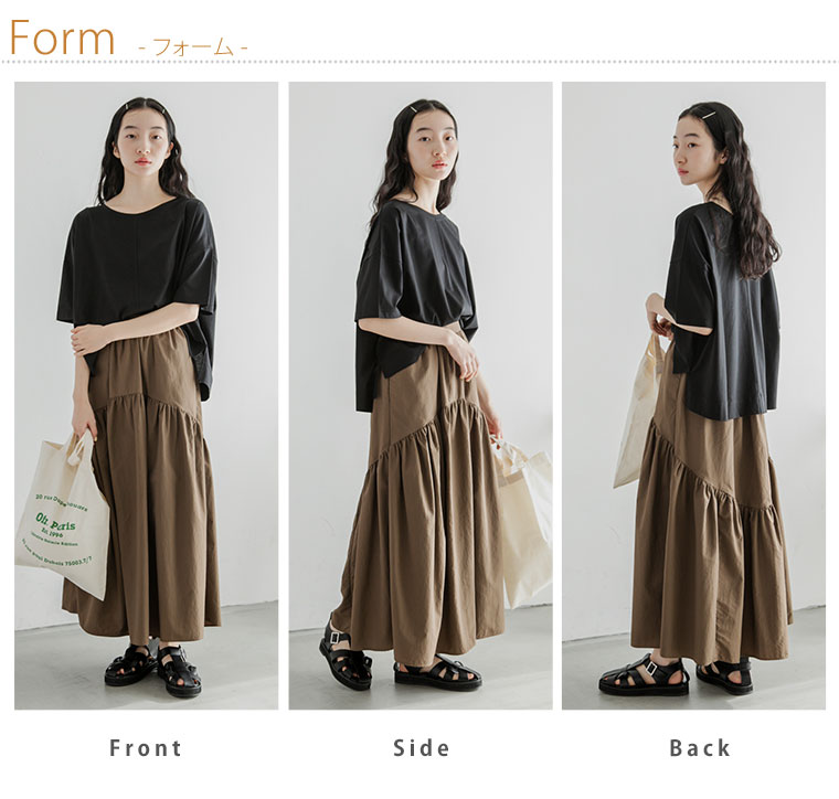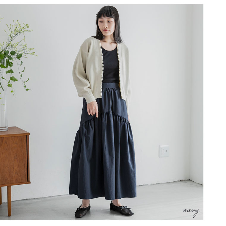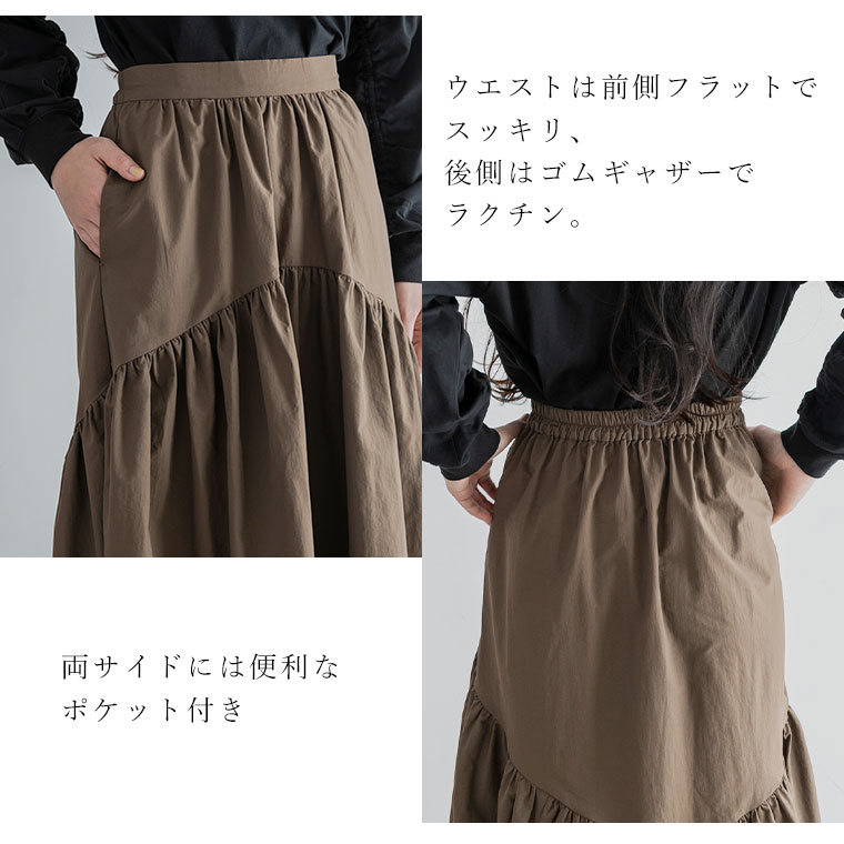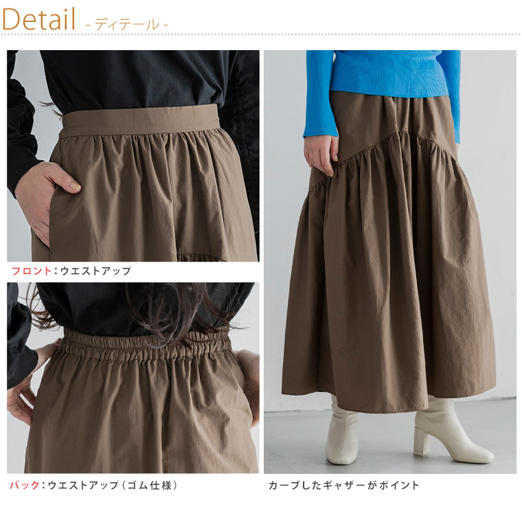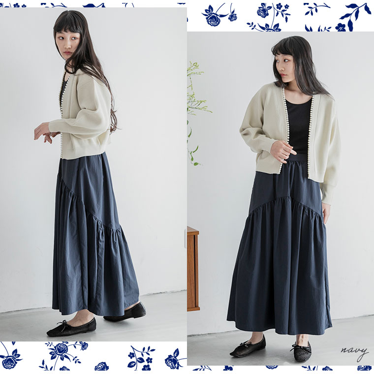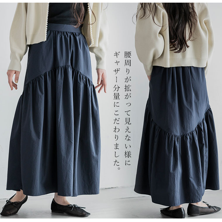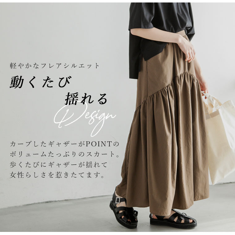 歩くたびにギャザーが揺れて女性らしさを惹きたてます。