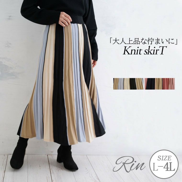 【Rin】履き心地も良い綺麗なシルエットのマルチストライプスカート