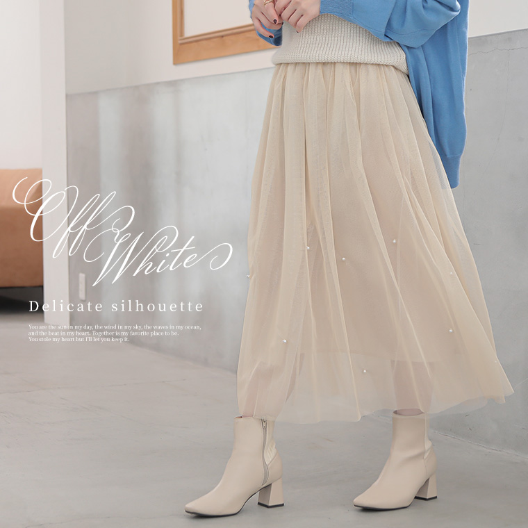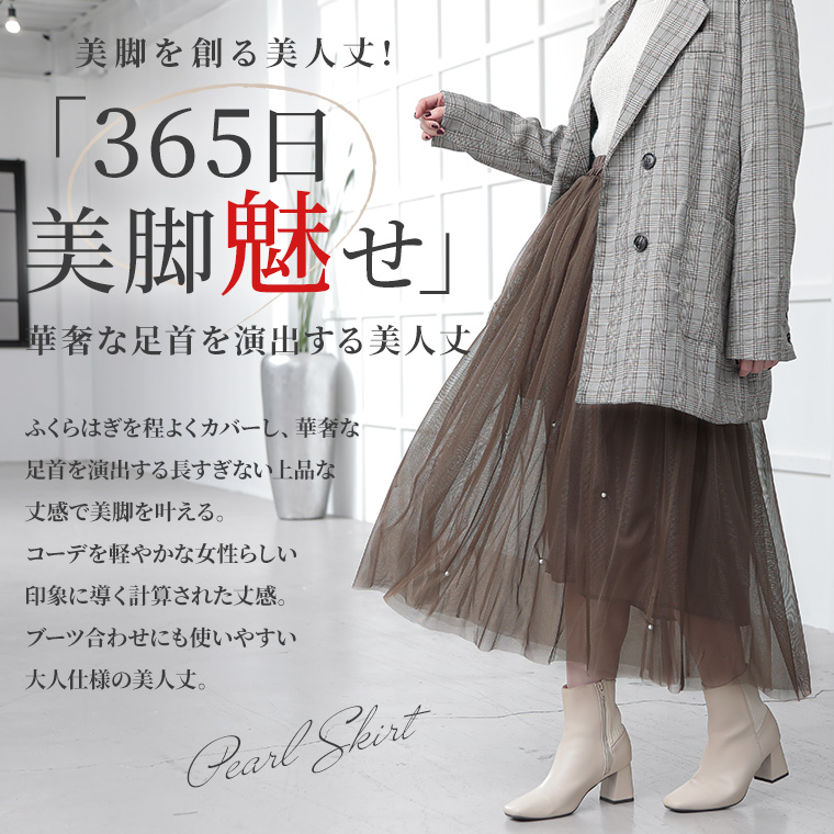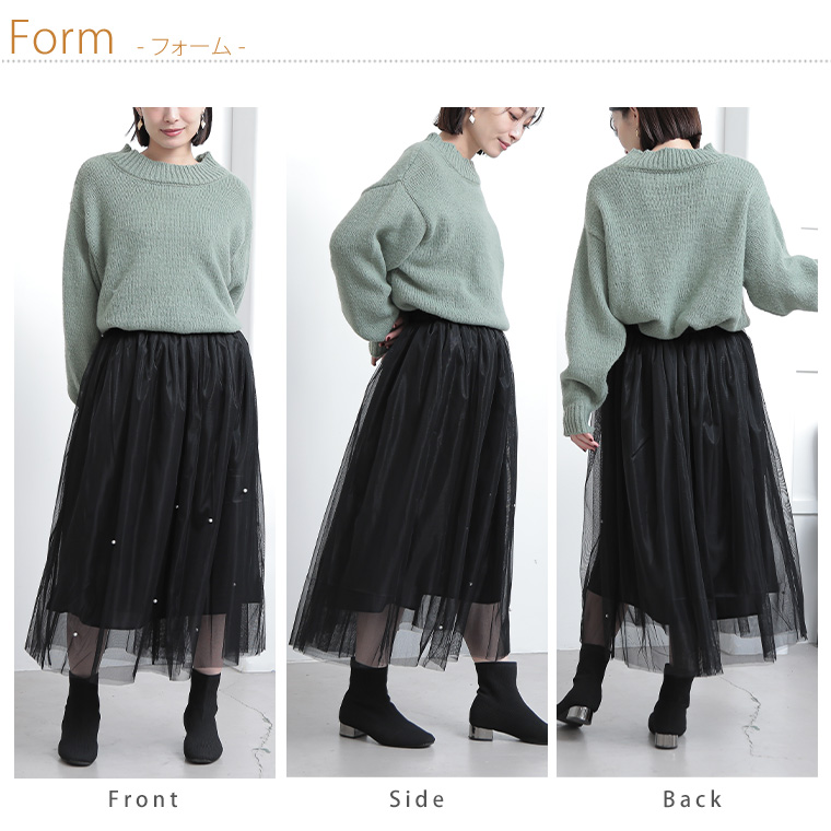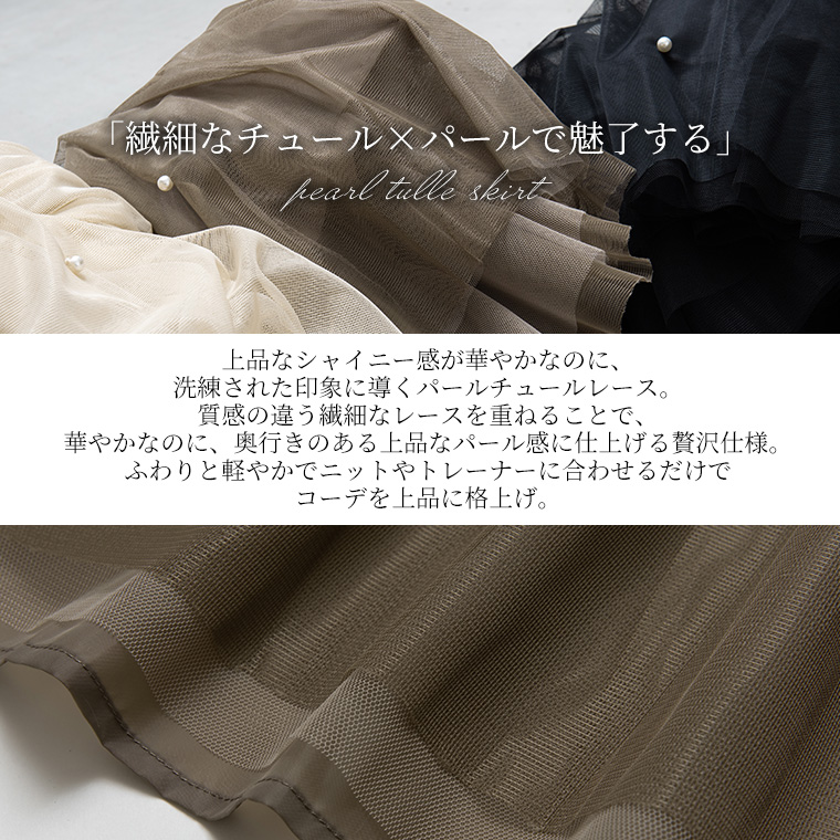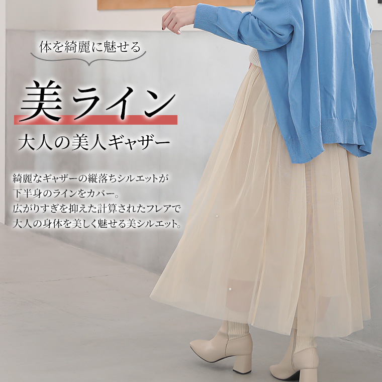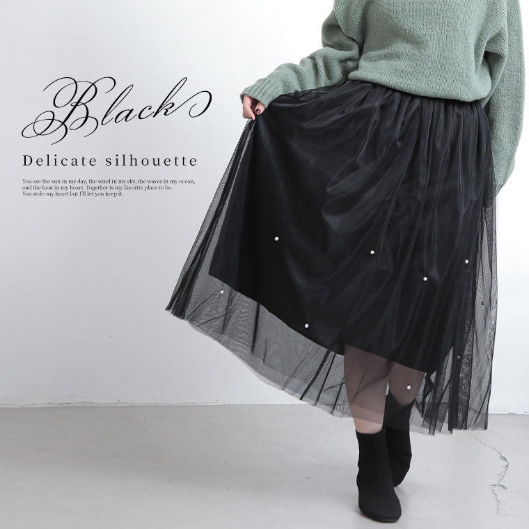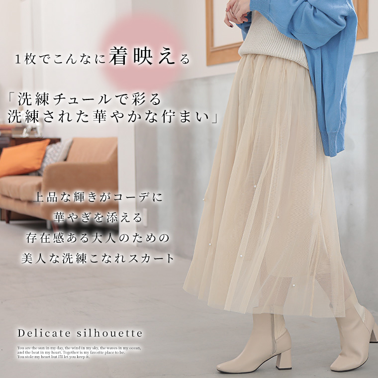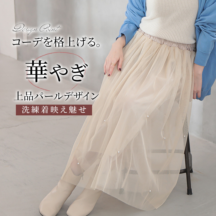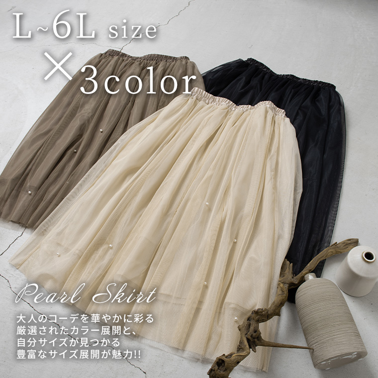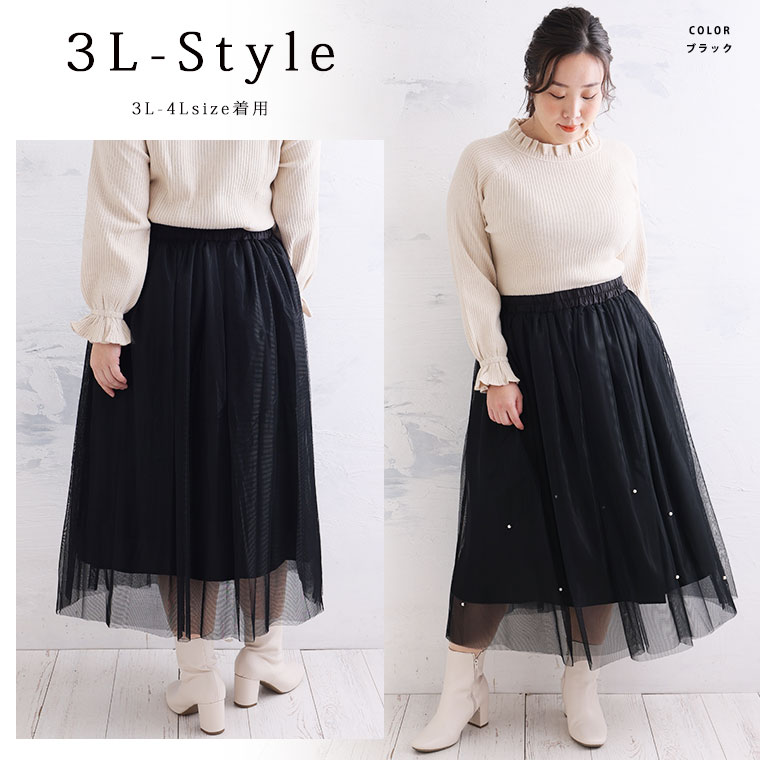 ボトムス ロングスカート LL 3L 4L 5L 6L 冬 冬物 冬服 ぽっちゃり ゆったり ナチュラル プラスサイズ Rin 洗練着映え! パール×チュールスカート オフィス 大人 着やせ 体型カバー ビジネス 通勤 ママ