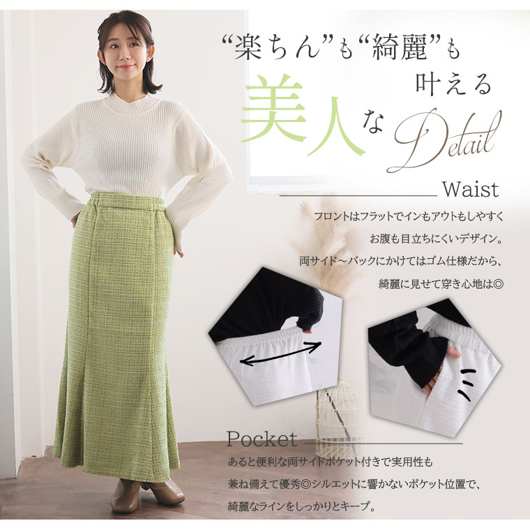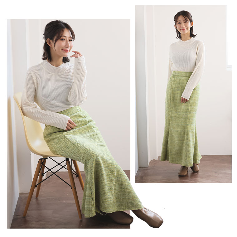 エレガントでクラシカルな上品デザイン ツイードマーメイドスカート