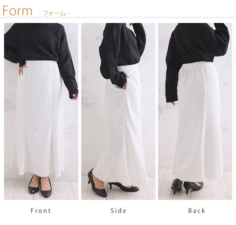 体型を拾いにくく、きれいなラインに仕上がるように設計された美人スカート