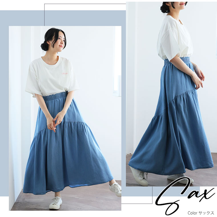 快適と楽ちんを叶えるテンセルデニムラウンド切替スカート