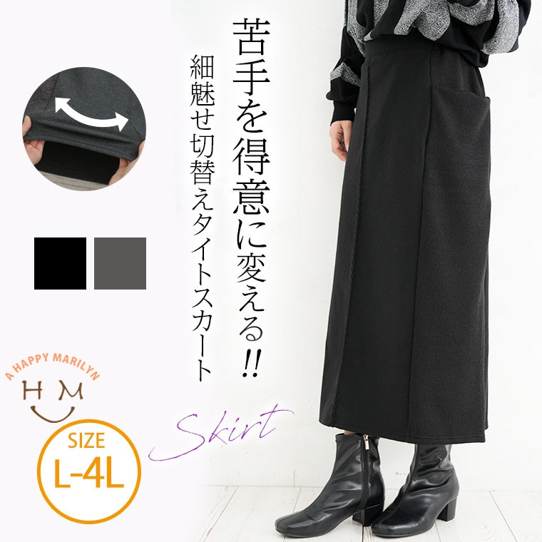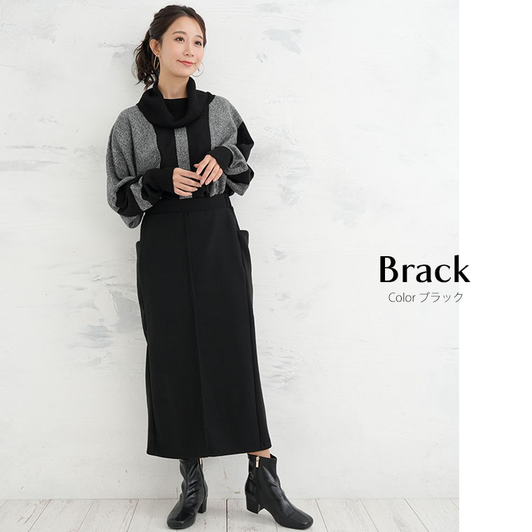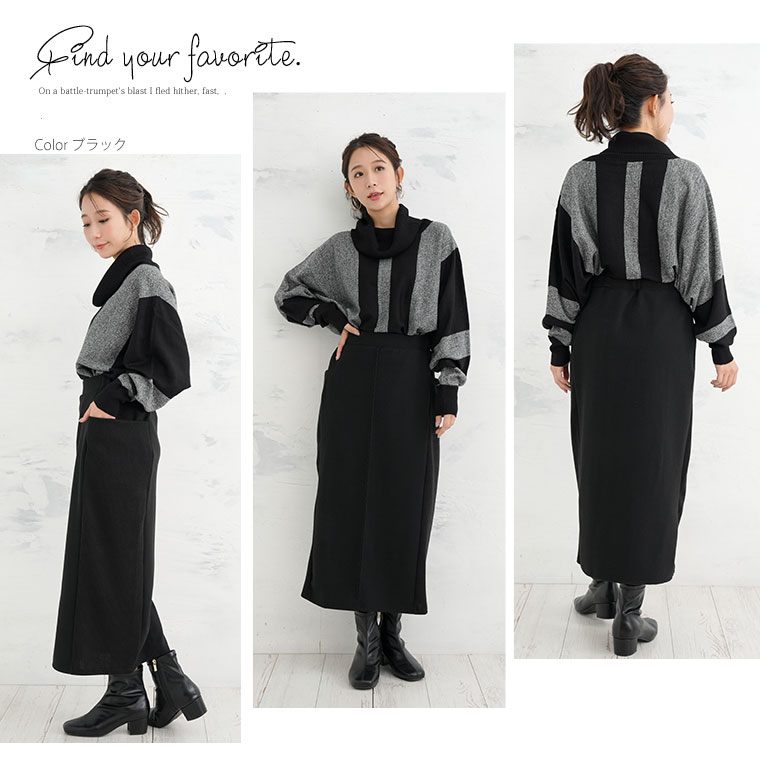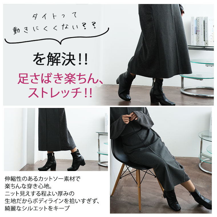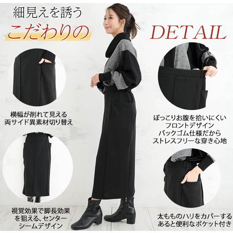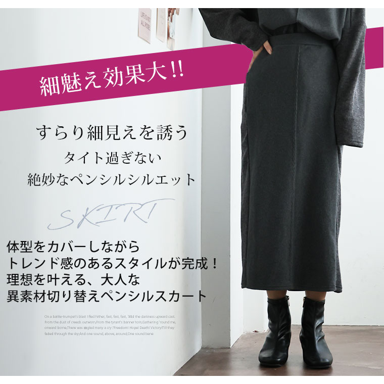 ストレッチ素材で動きやすい!異素材切り替えタイトスカート