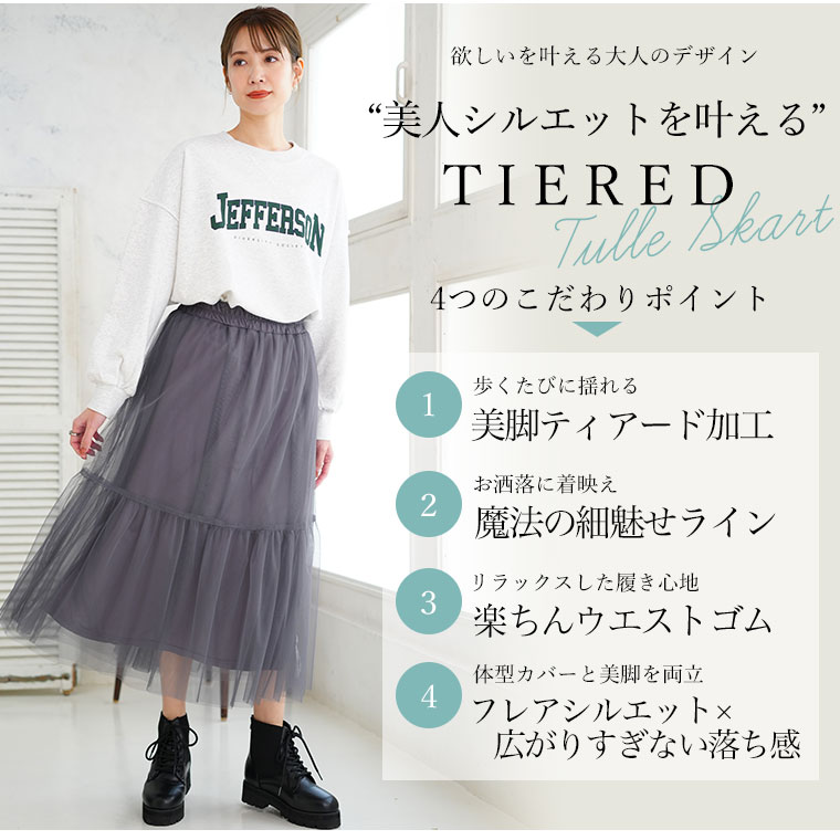 ティアードの切替幅にこだわったデザインでシルエットも程よく引き締めて華奢見せしてくれる。
