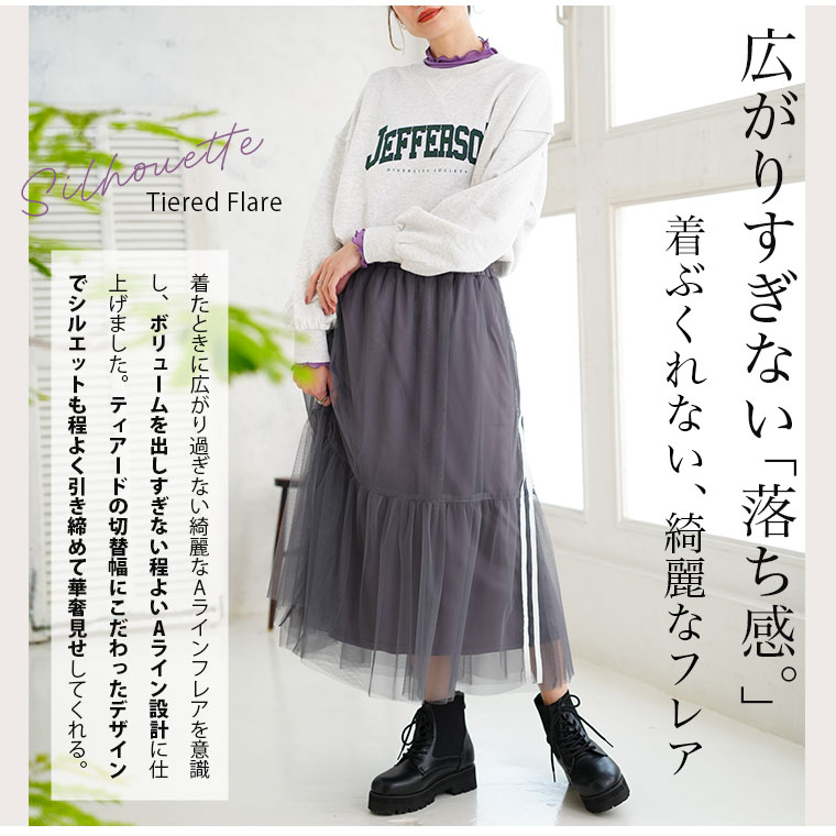 広がりすぎない「落ち感。」ふわりと繊細なチュールレーススカート