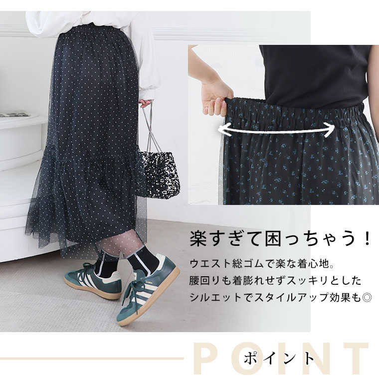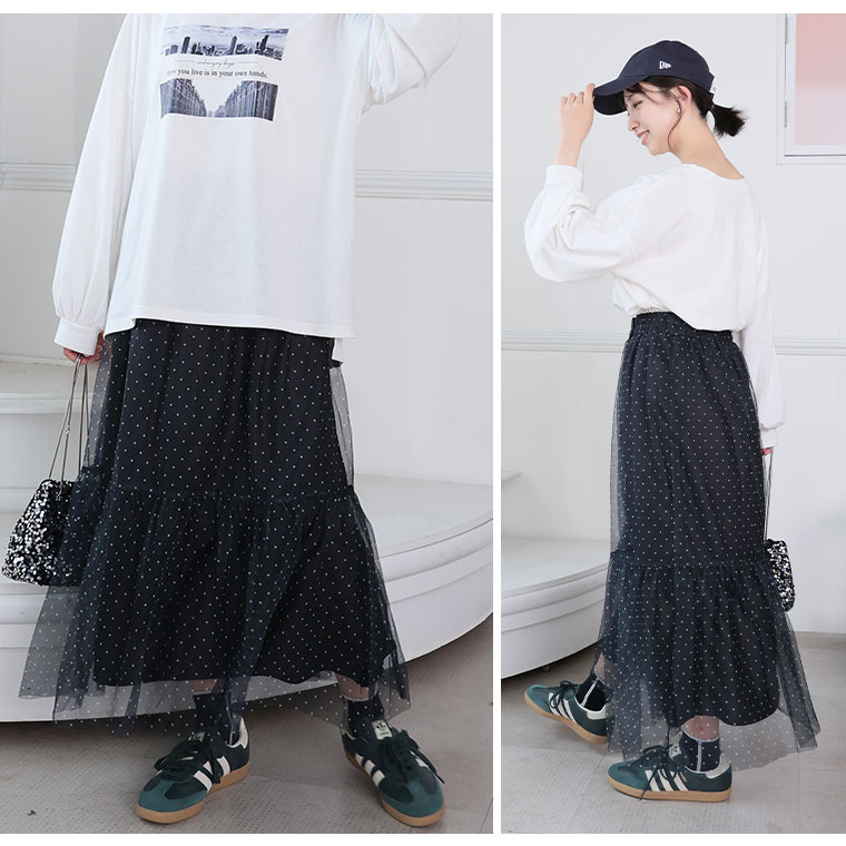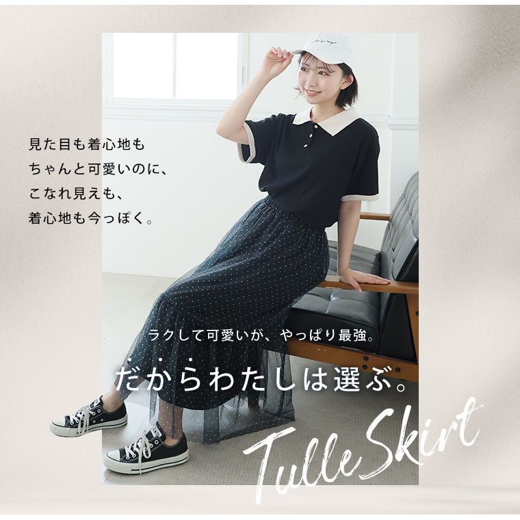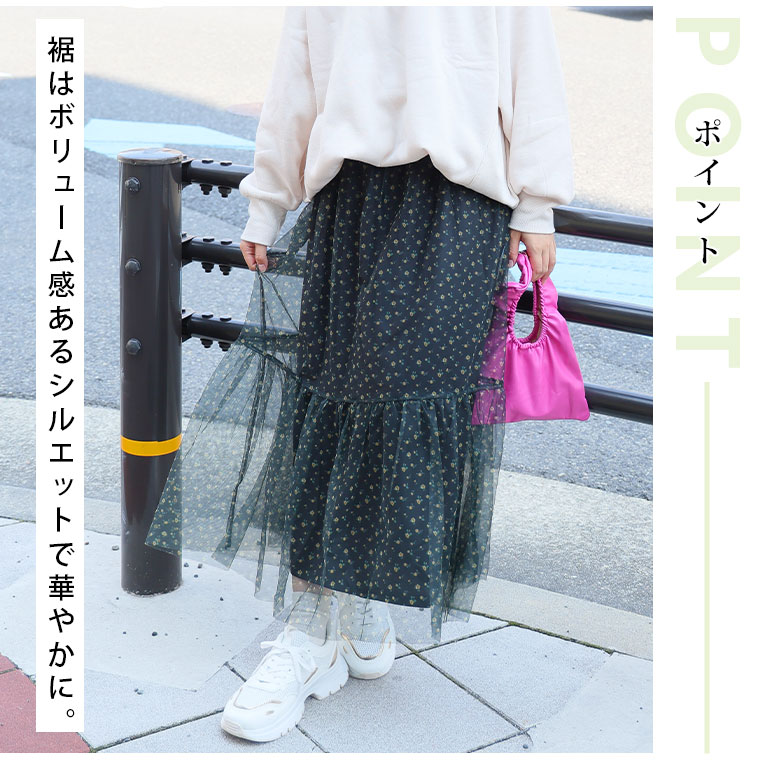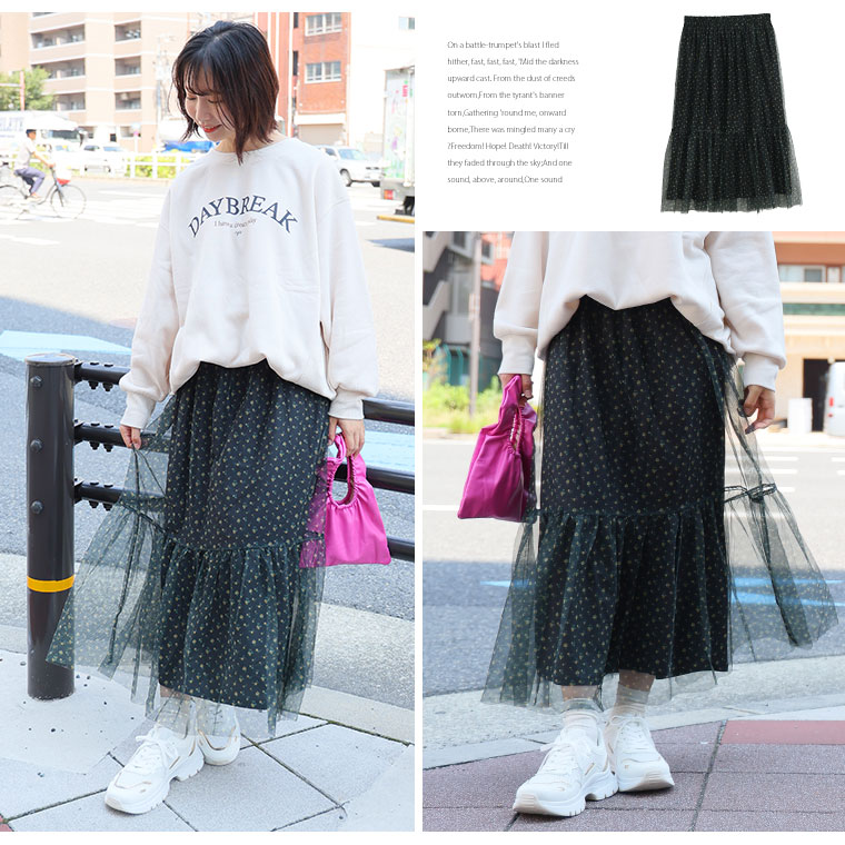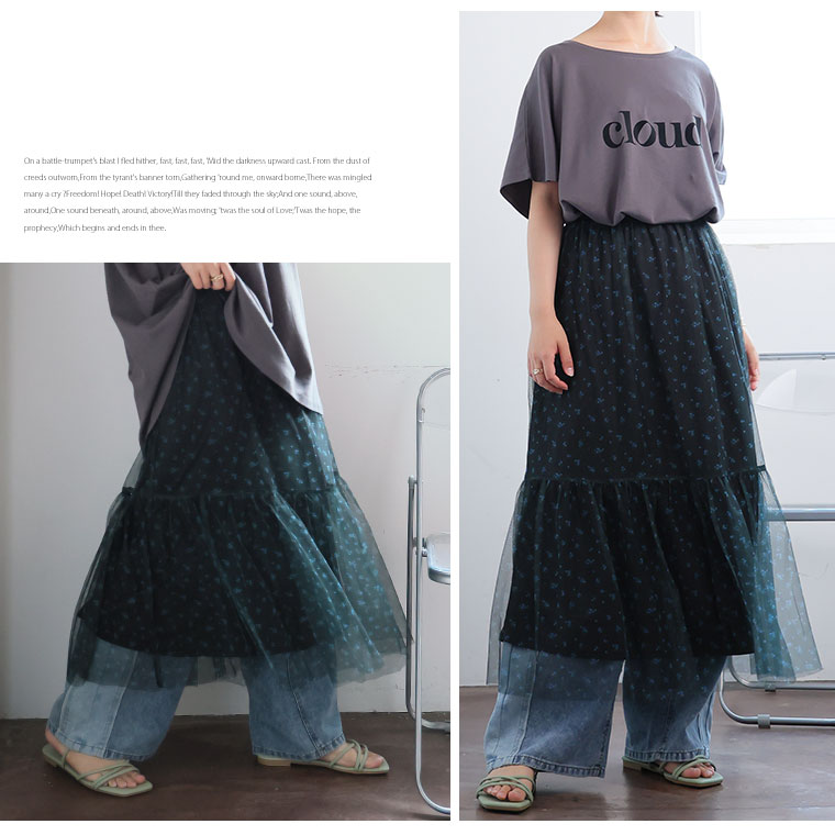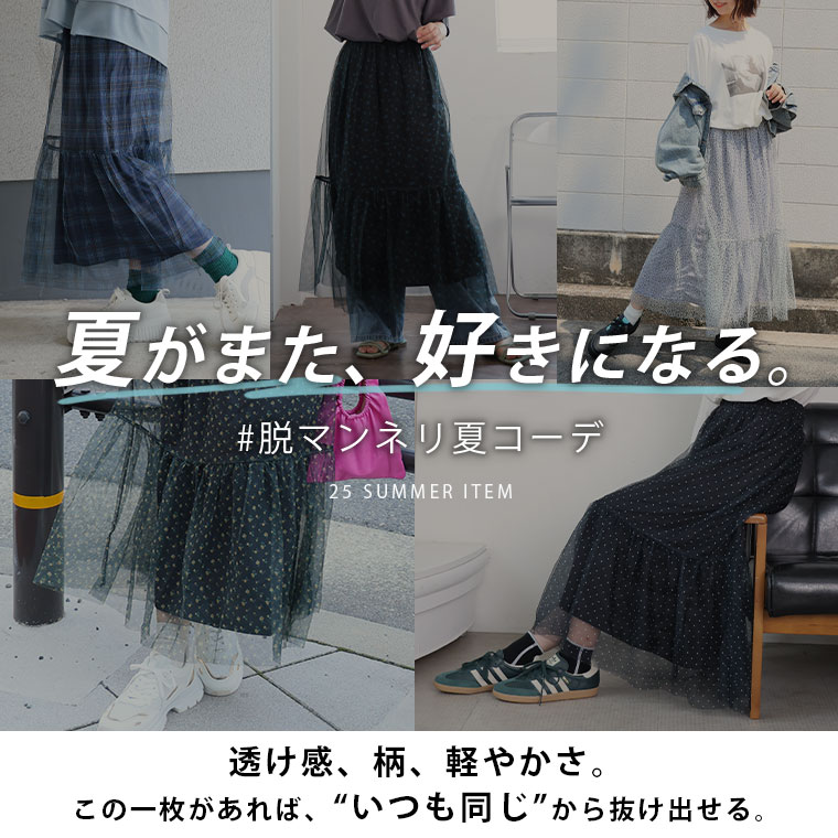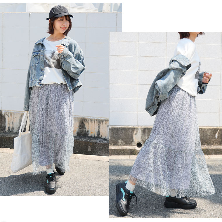 透け感×柄レースでいつものコーデをアップデートしてくれるチュールスカート