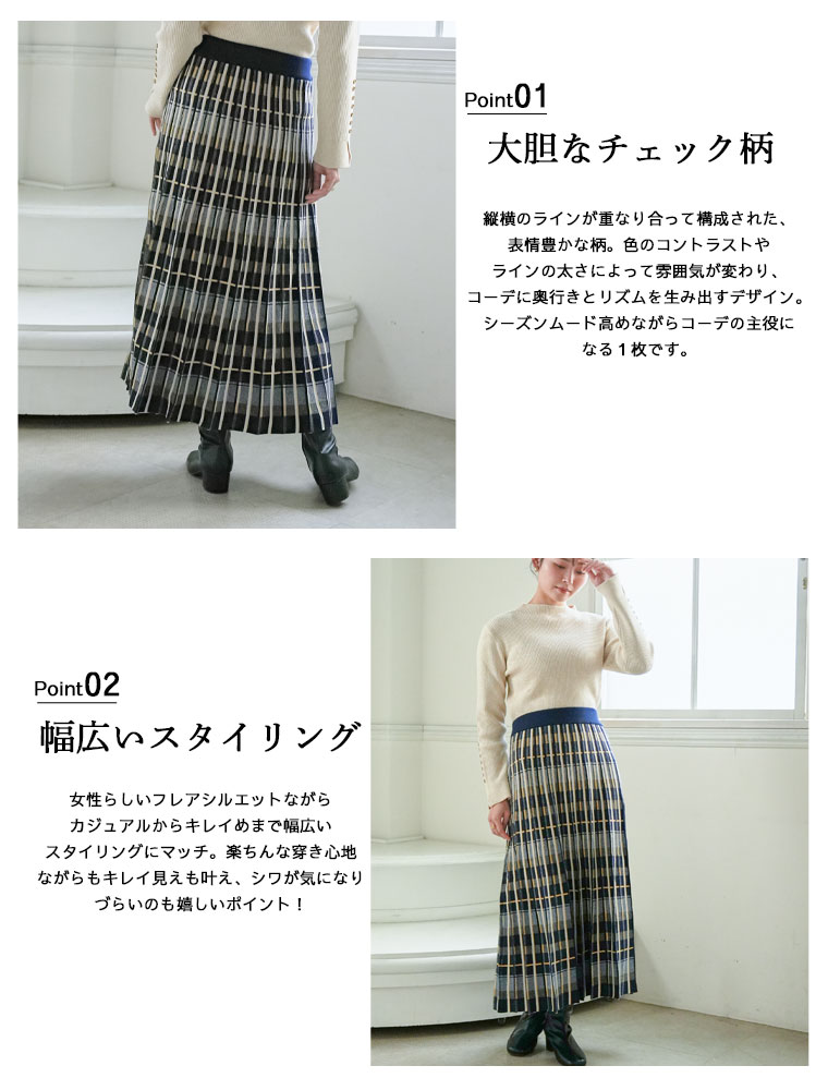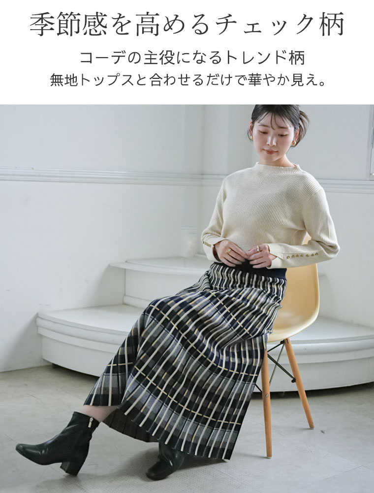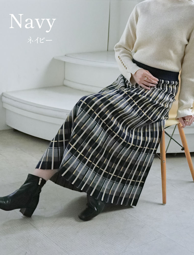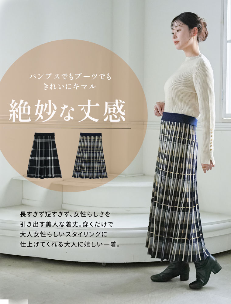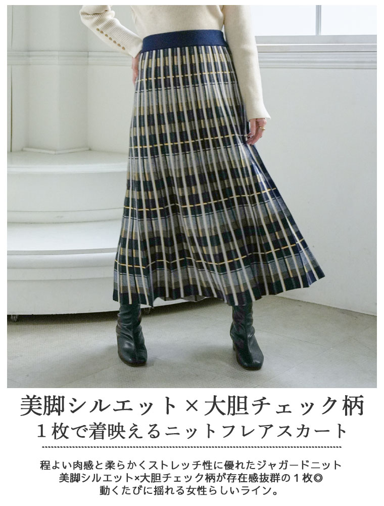 美人に細魅せチェック柄ニットフレアスカート