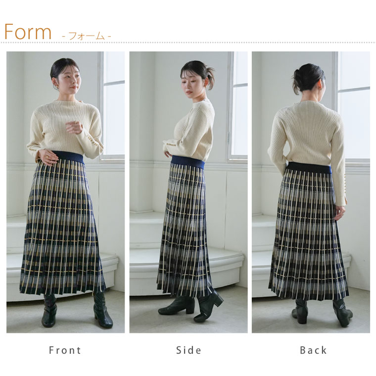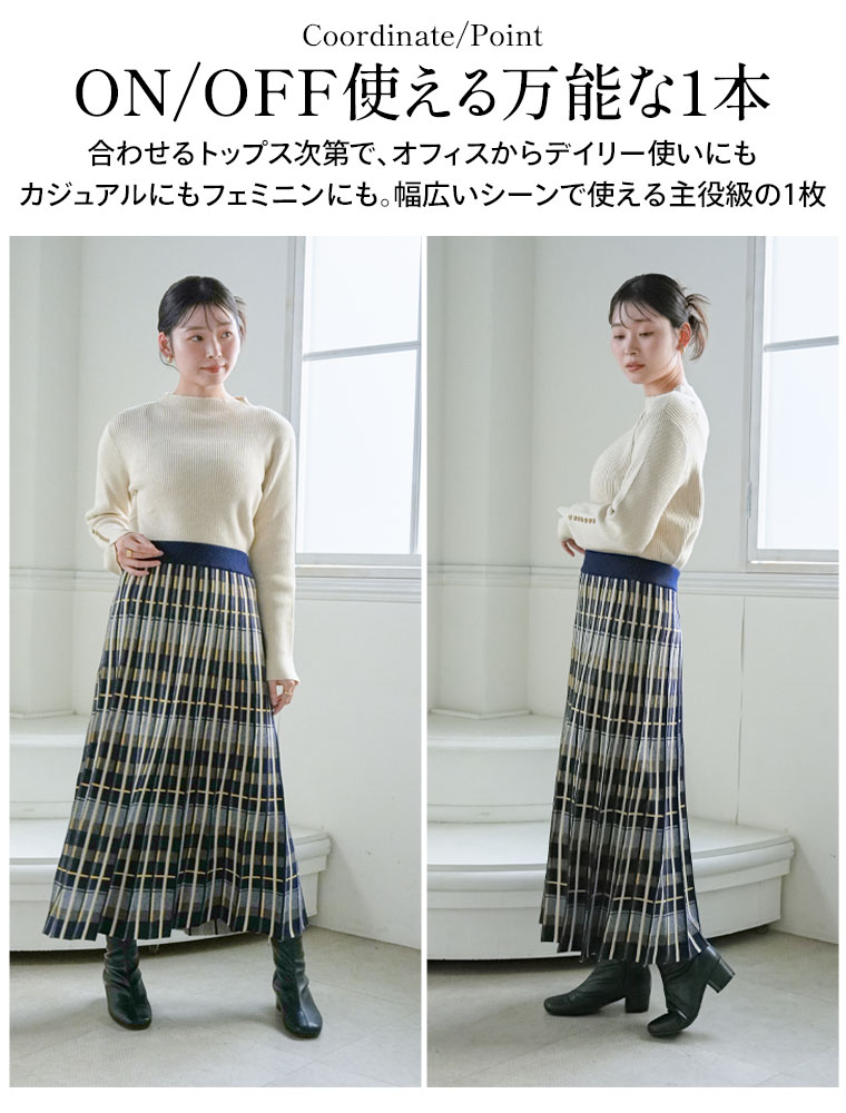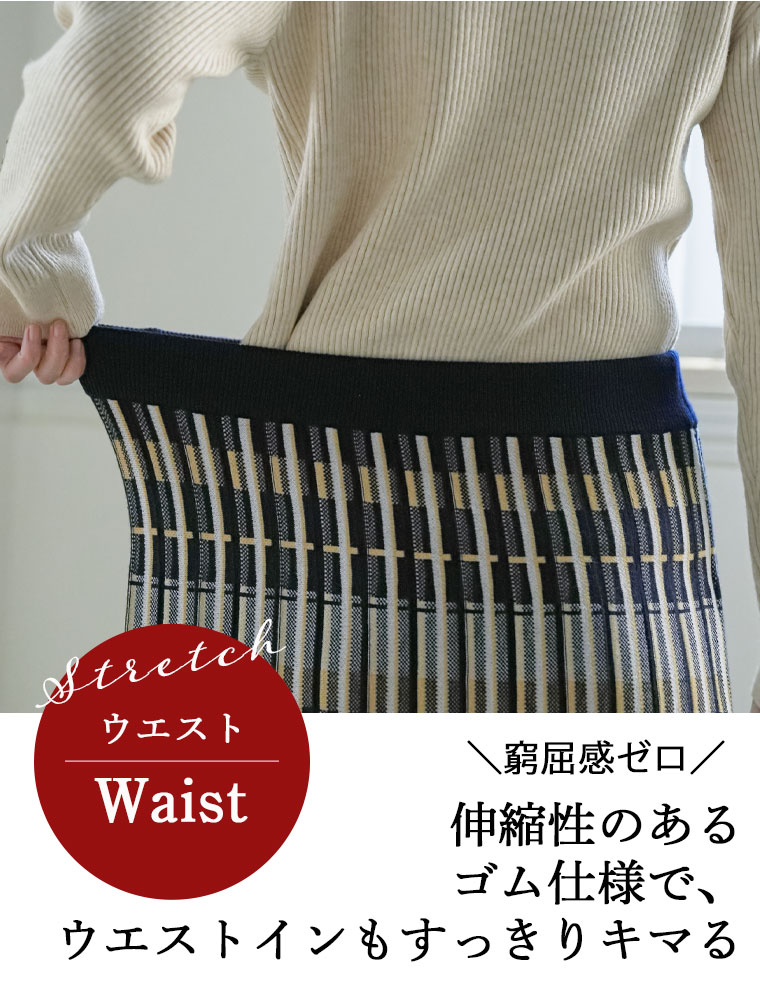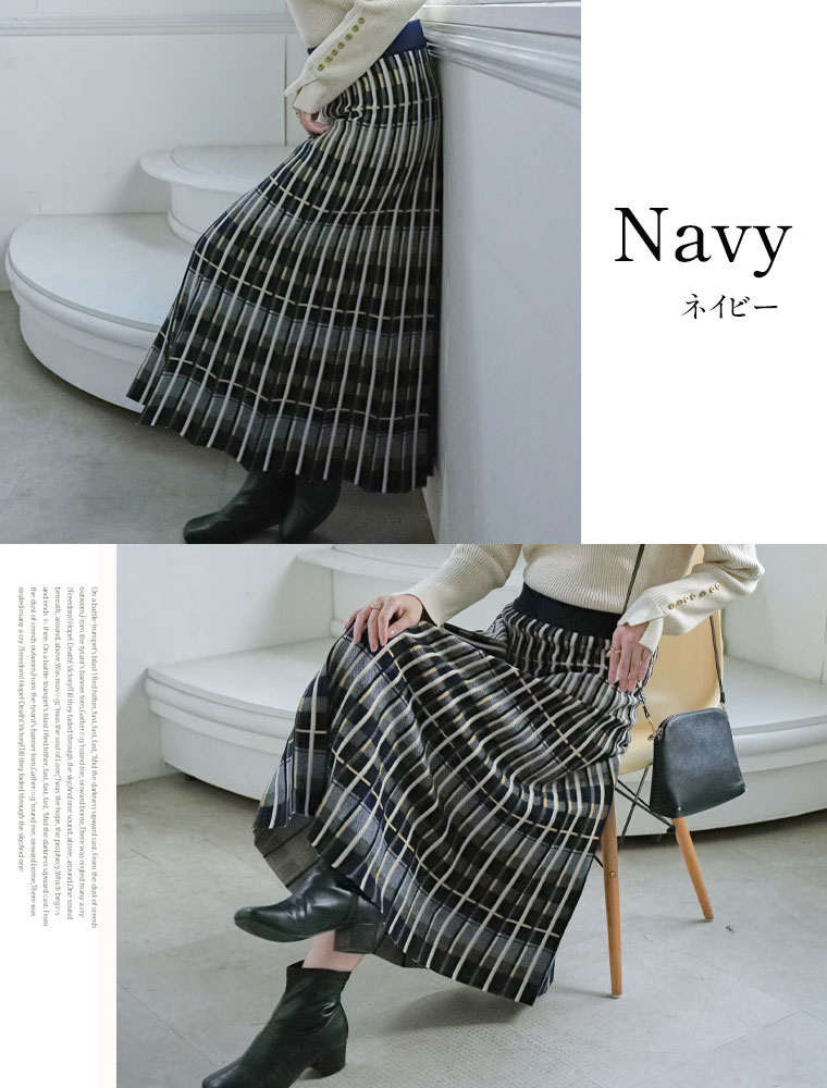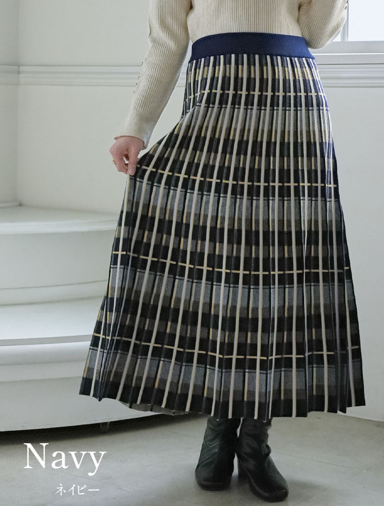 美人に細魅せチェック柄ニットフレアスカート