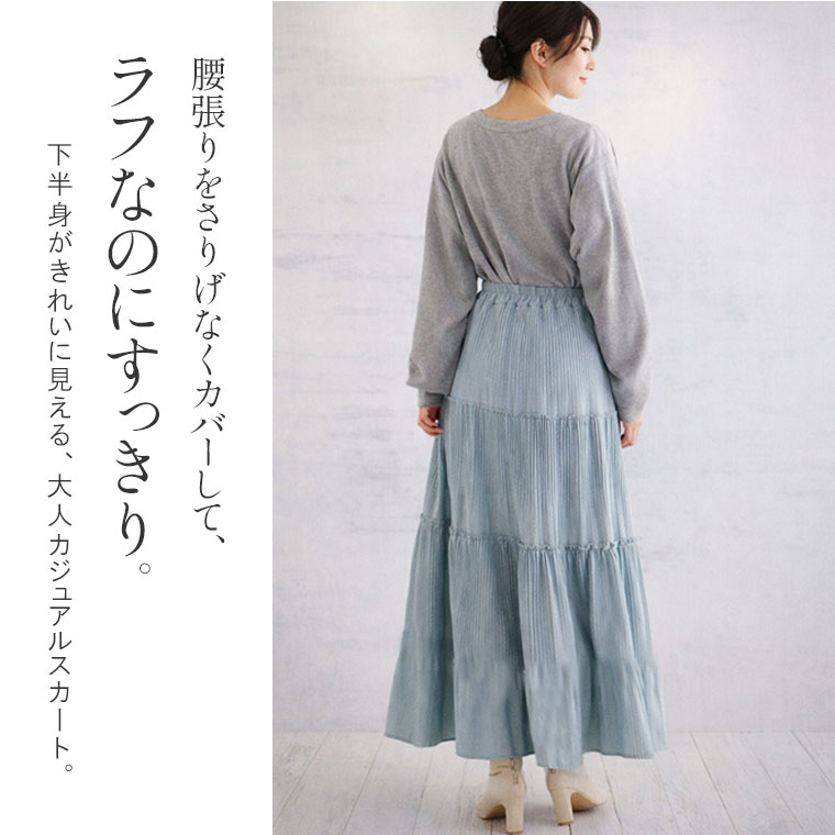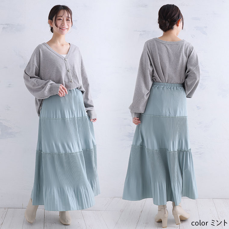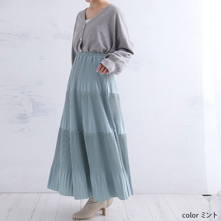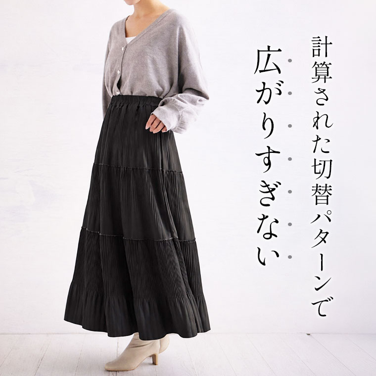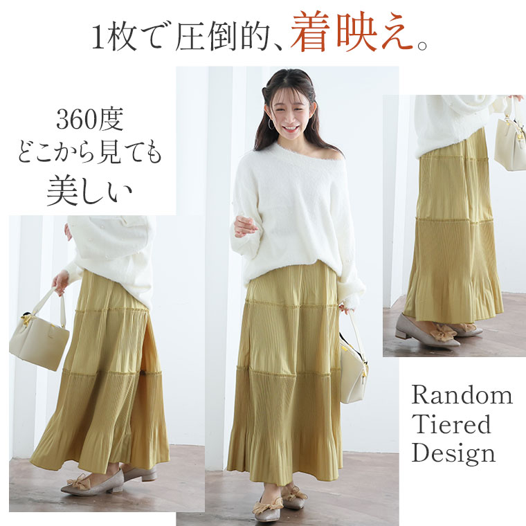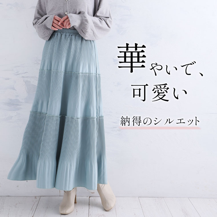 スカート好きさんにこそ着てほしい、プリーツティアードロングフレアスカート。