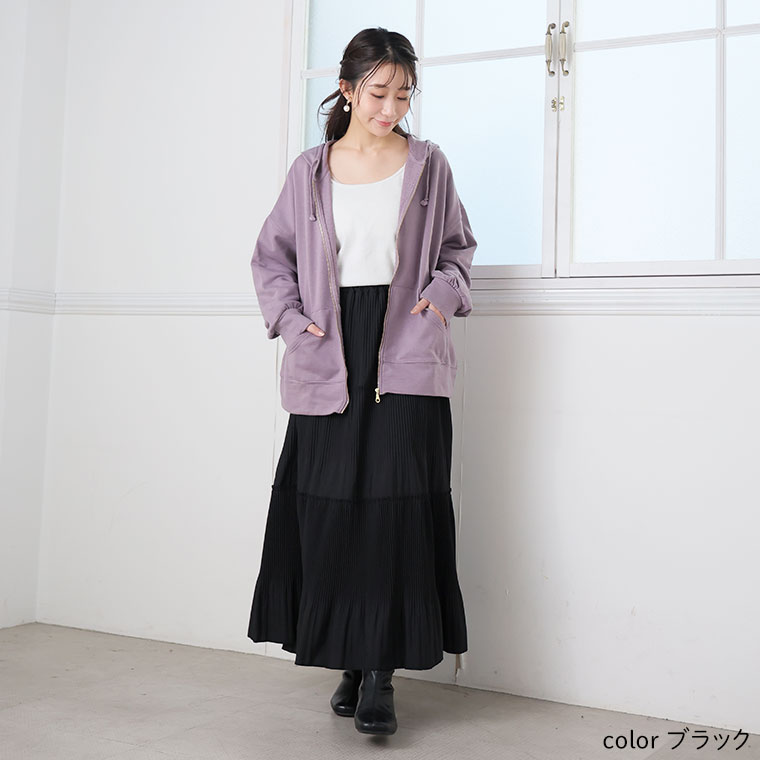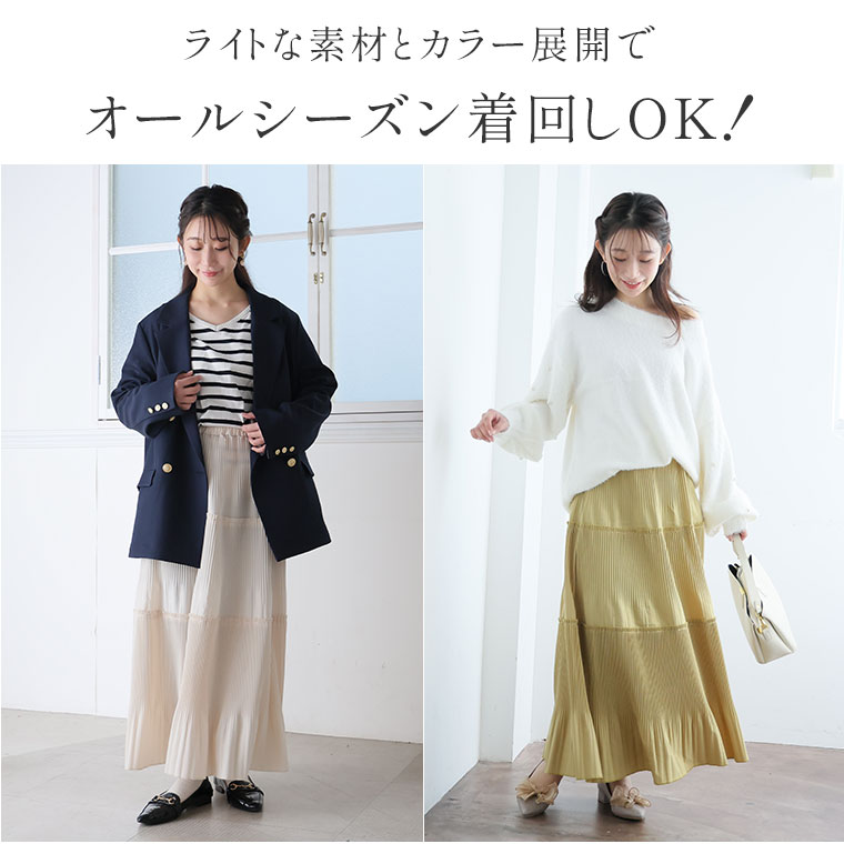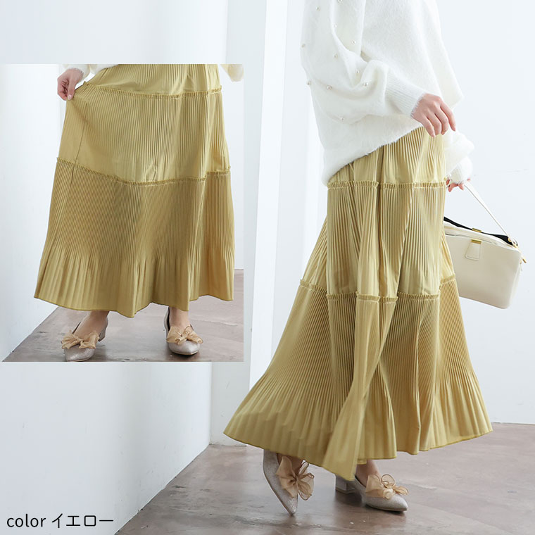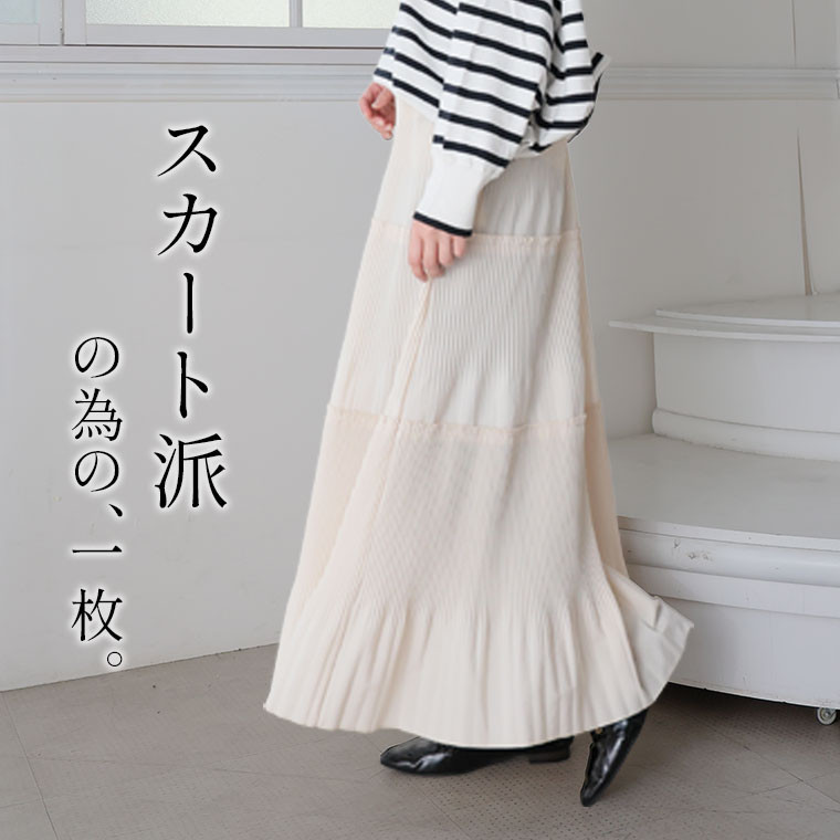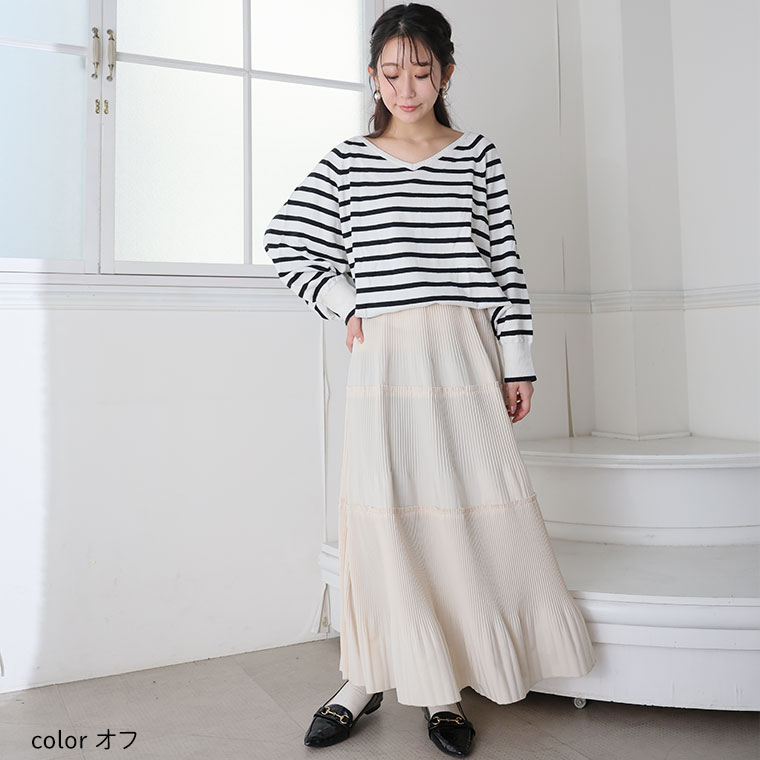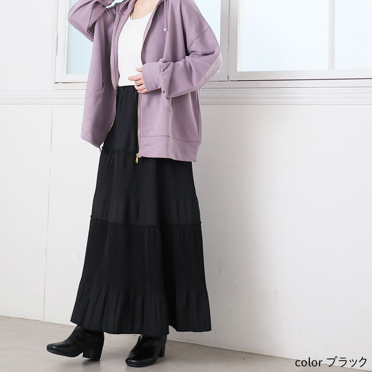 スカート好きさんにこそ着てほしい、プリーツティアードロングフレアスカート。