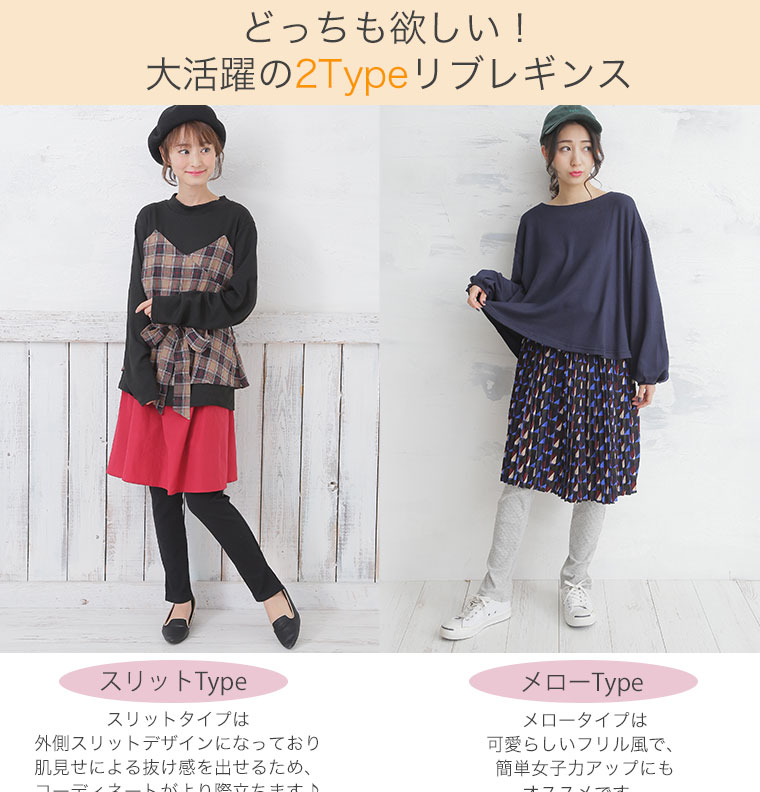 スリット・メロー2Typeの裾デザインが選べる!リブレギンス