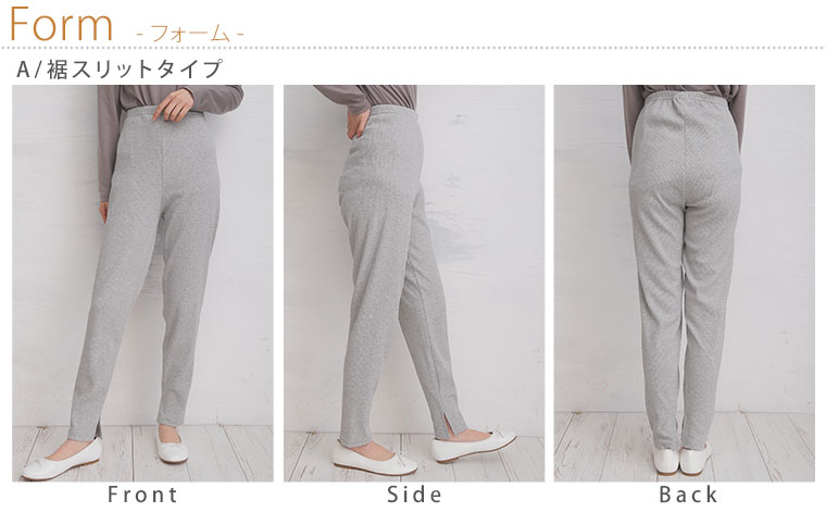 豊富なカラバリとスリット・メロー・裾くしゅの3タイプから選べる楽ちんストレッチリブレギンス