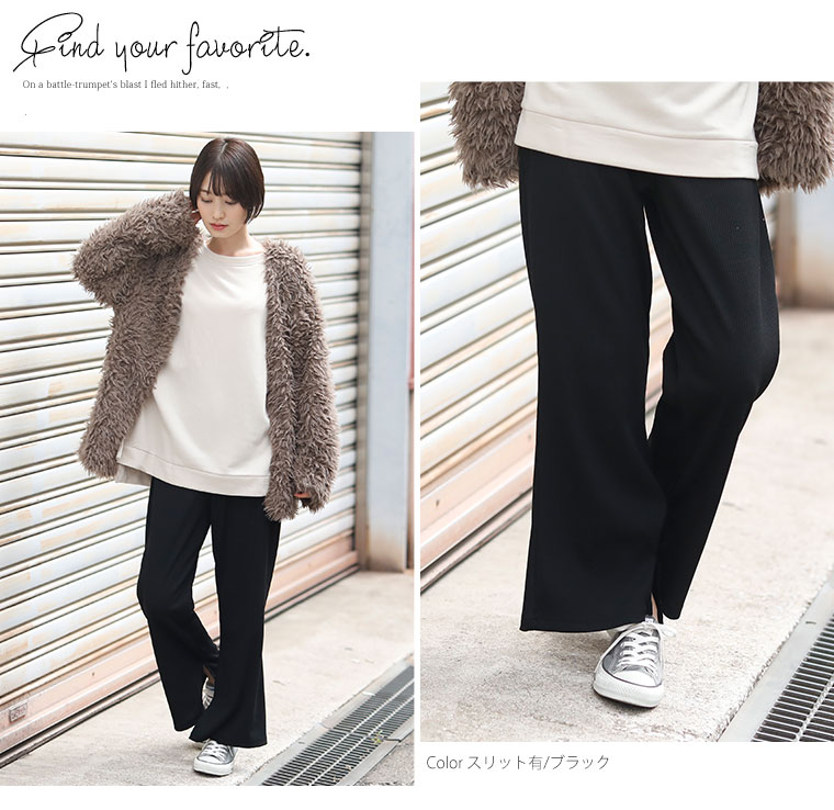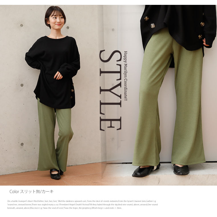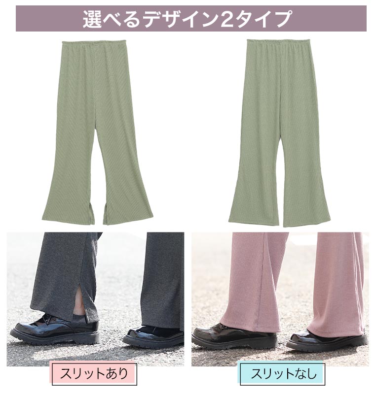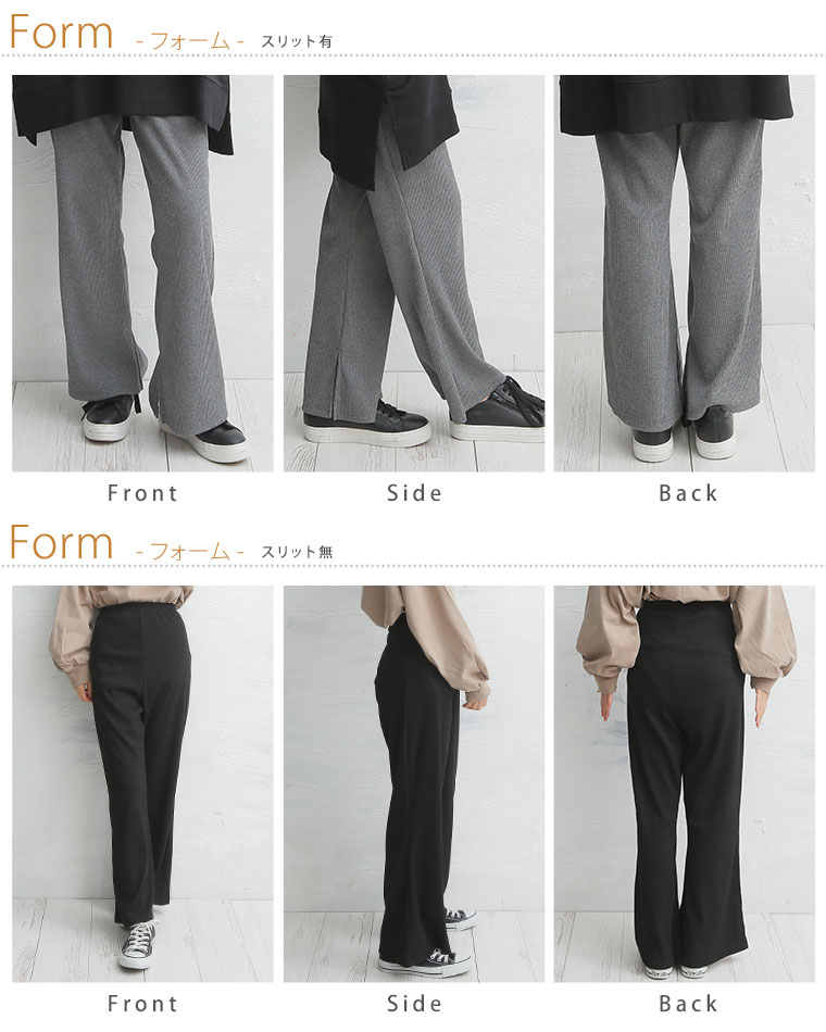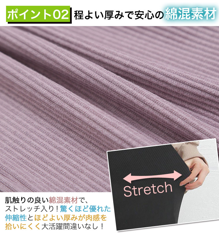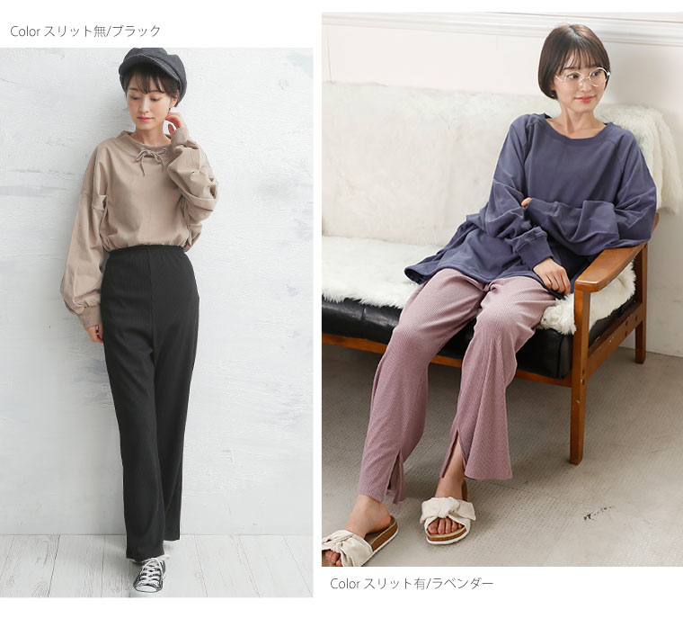 ストレッチで動きやすいリブ素材とウエストゴムで楽ちんなのに美脚にお洒落!