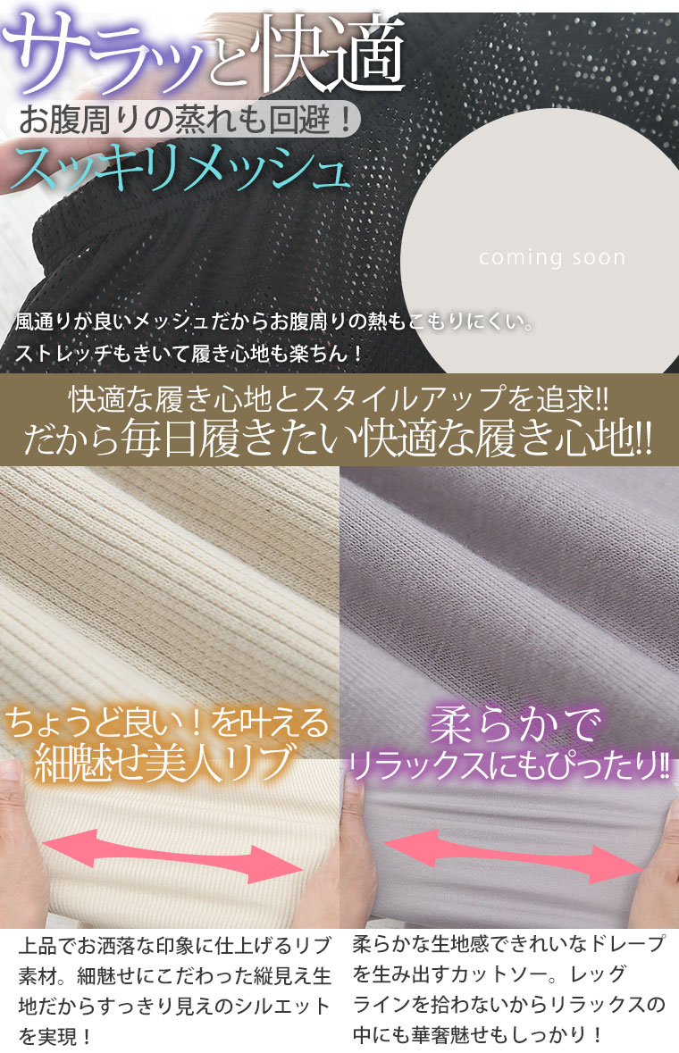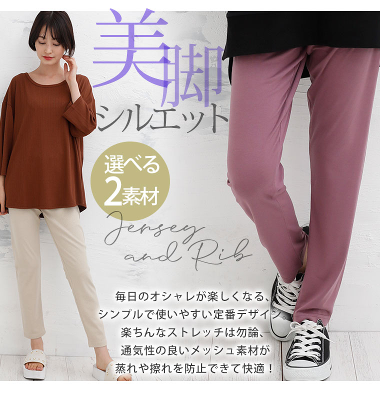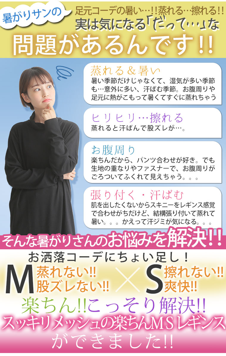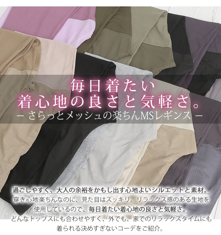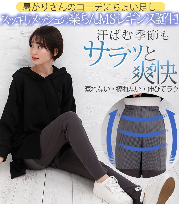 暑がりさんのコーデちょい足し リブとカットソーで選べるこっそりメッシュで楽ちんMSレギンス