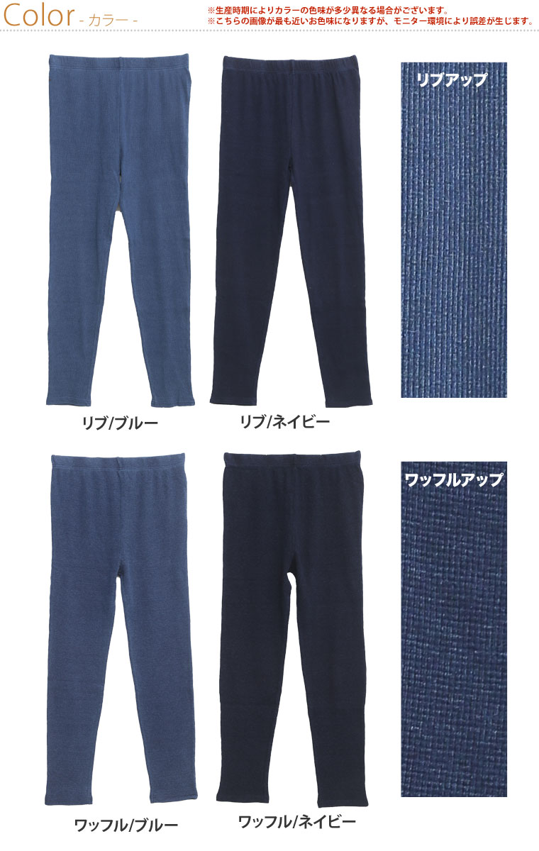 4. 大きいサイズ リブ と ワッフル から 選べる デニム風 インディゴ染 レギンス