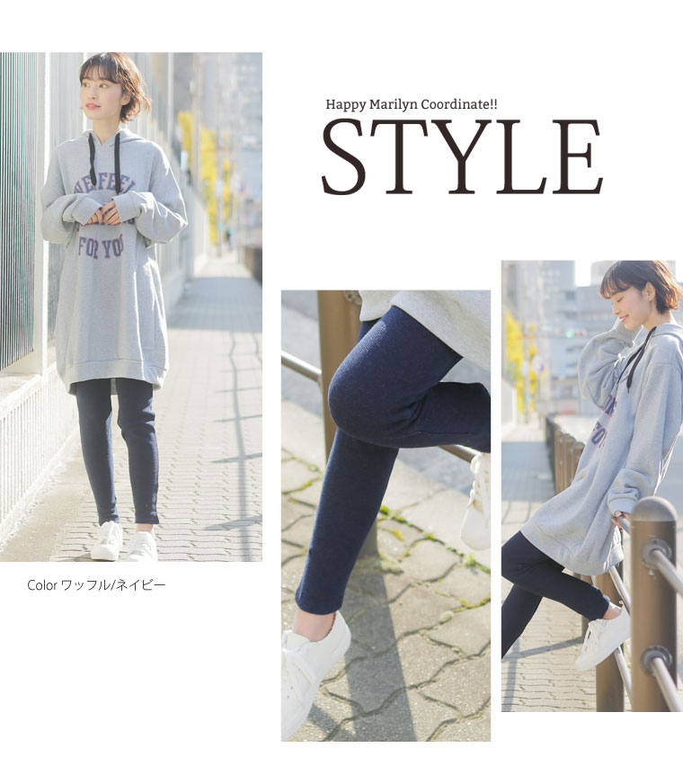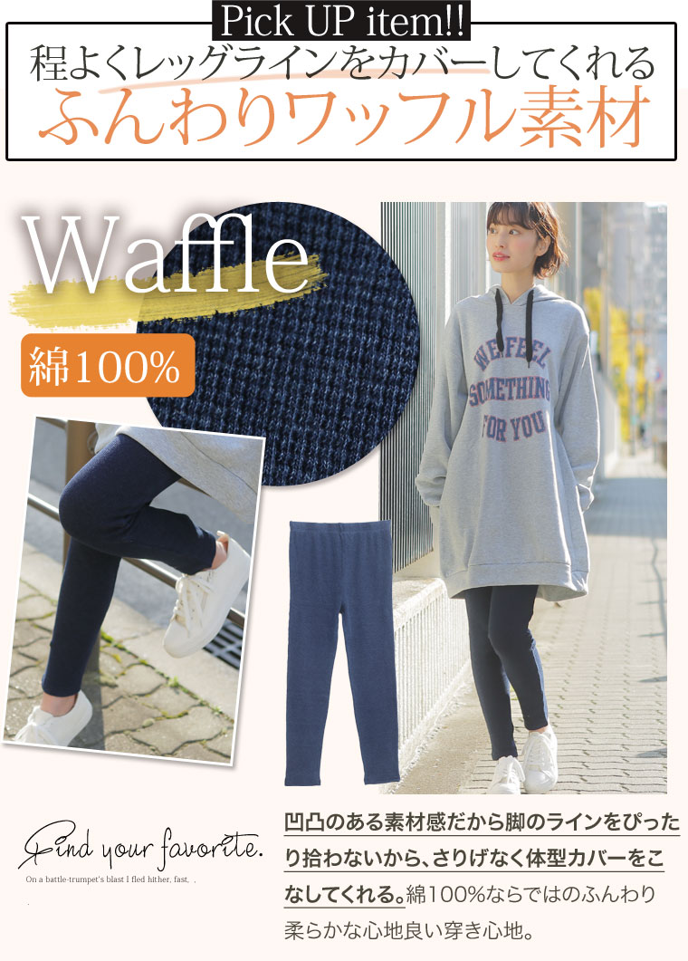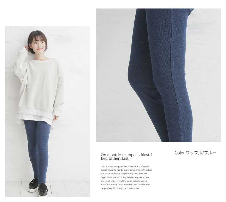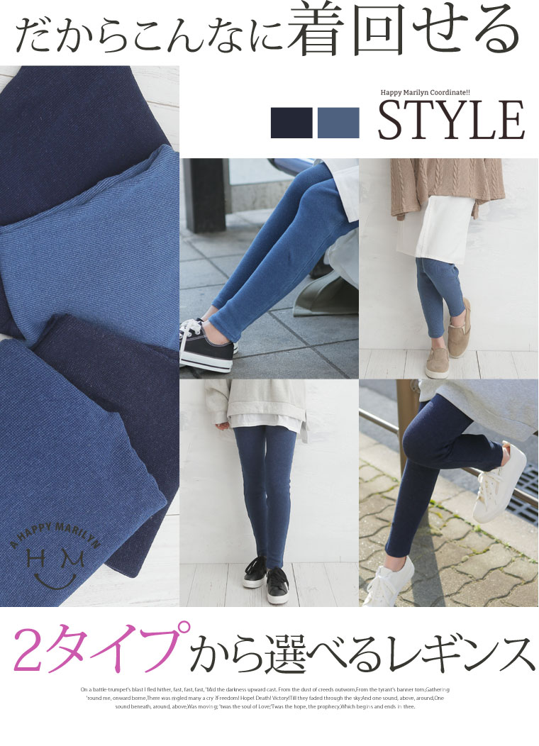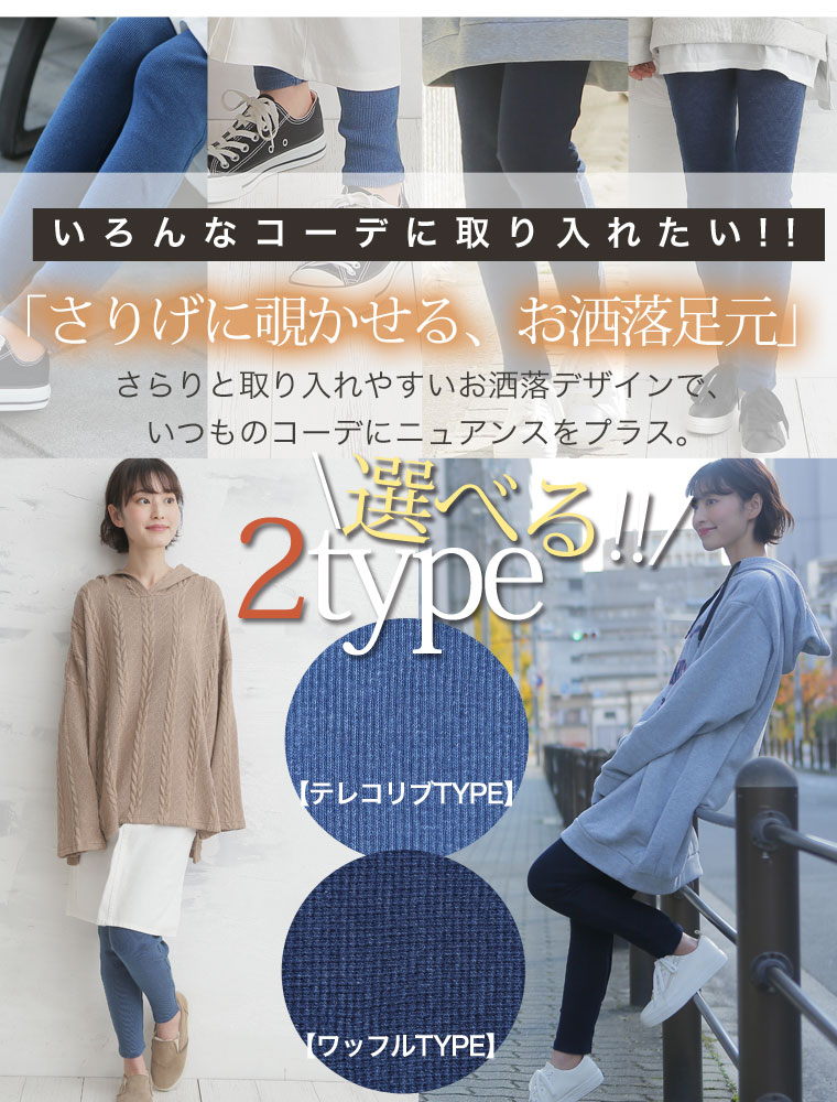 リブとワッフルの2タイプから選べる!!デニム風インディゴレギンス